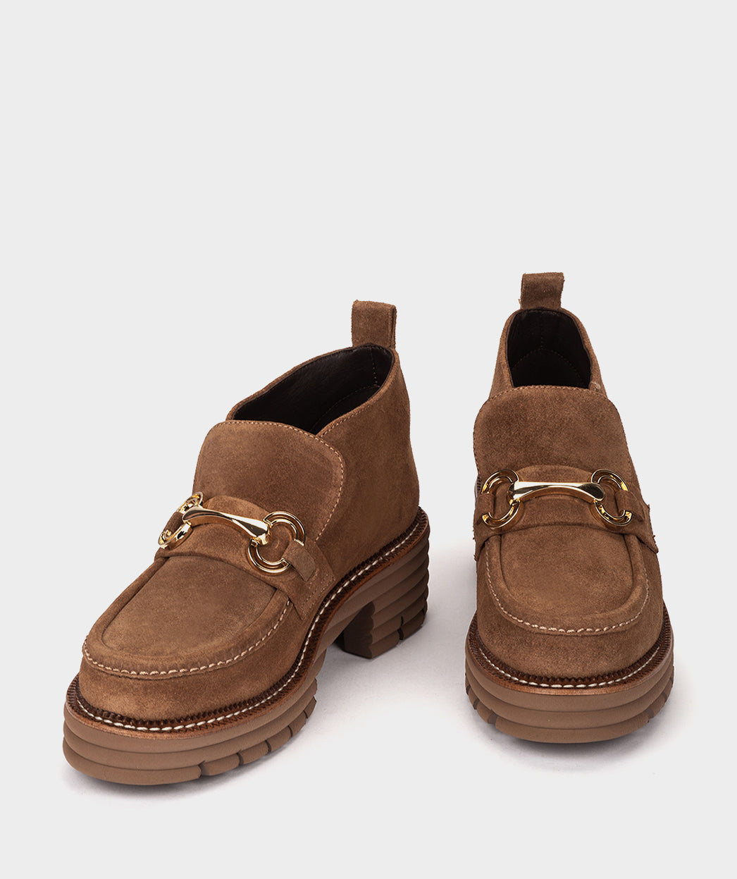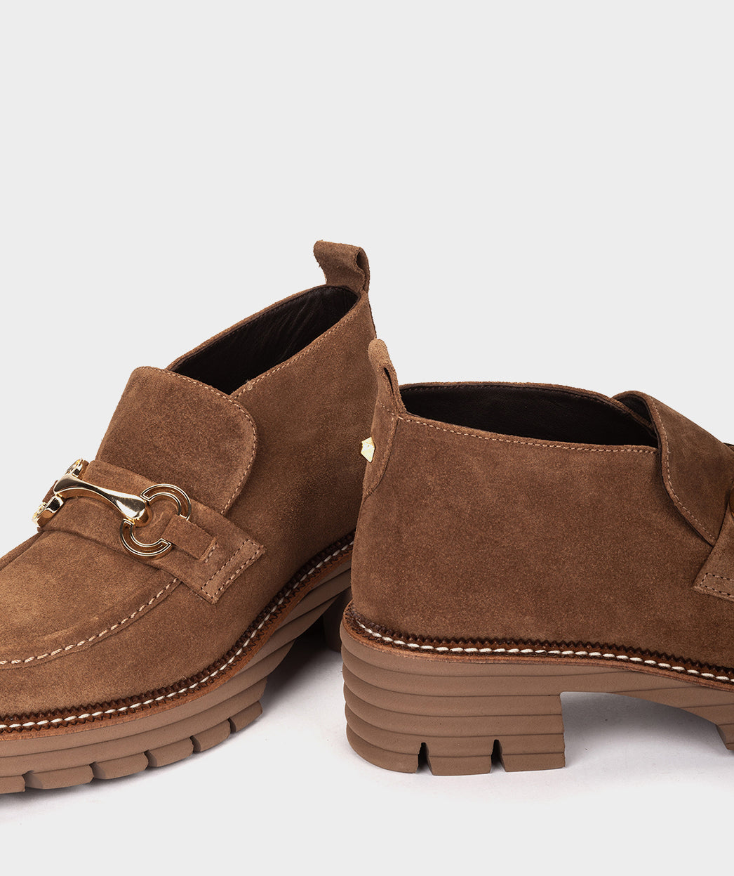 Zapato de ante de color marrón con plataforma. Un modelo casual y original que completará tus looks. La hebilla sobre el empeine le aporta un toque original y apora personalidad al modelo.