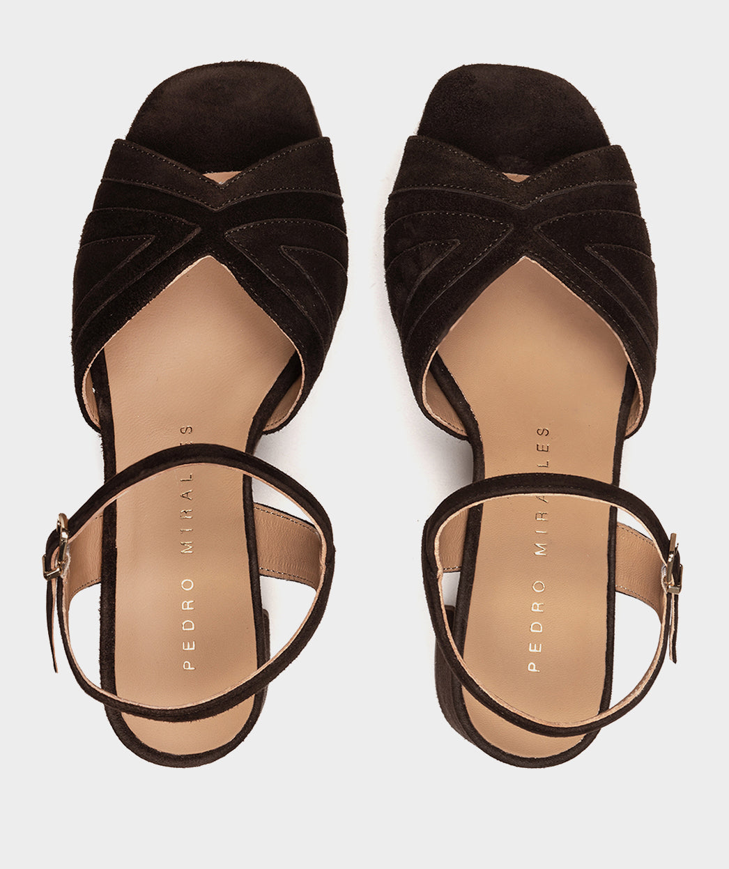 Sandalias de tacón de ante de color marrón. Estas sandalias combinan estilo y comodidad para que puedas llevarlas todo el día sin cansarte. No esperes más y luce las sandalias Salamanca.