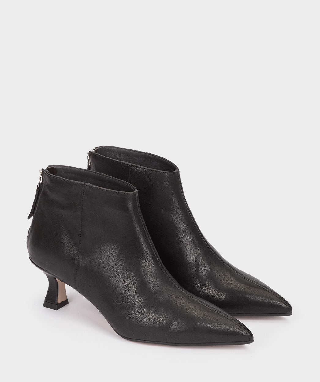 Botines de piel de color negro. Estos botinesde tacón bajo son ideales para cualquier look, la piel lleva un estampado de cocodrilo que hace que estos zapatos sean muy especiales y elegantes.