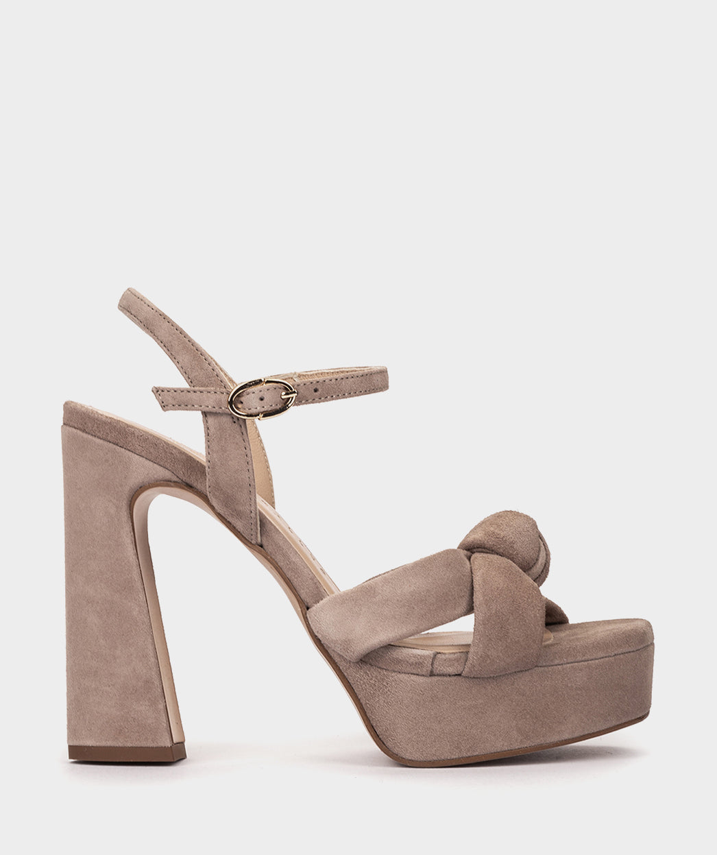 Sandalias de ante de color topo. Estas sandalias con plataforma te harán destacar en todos tus eventos. Además, su plataforma logra que la comodidad de este modelo sea aún mayor.