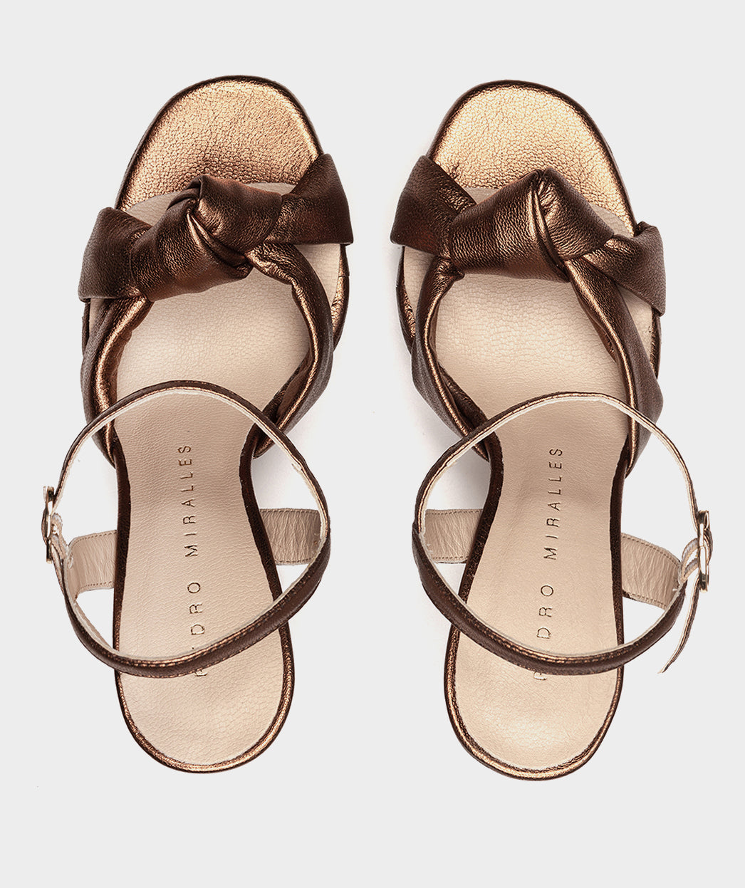 Sandalias de piel metalizada color bronce. Estas sandalias con plataforma te harán destacar en todos tus eventos. Además, su plataforma logra que la comodidad de este modelo sea aún mayor.