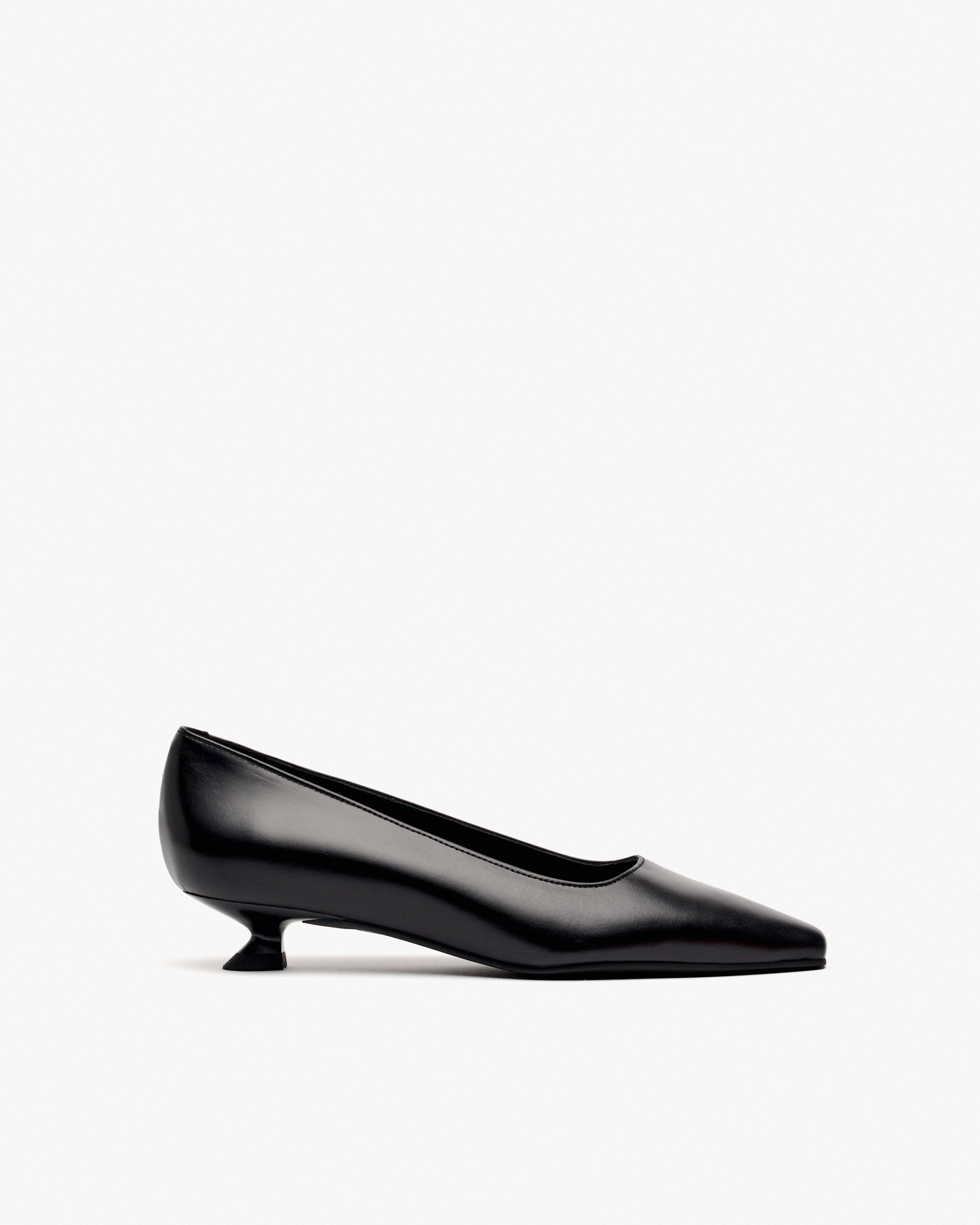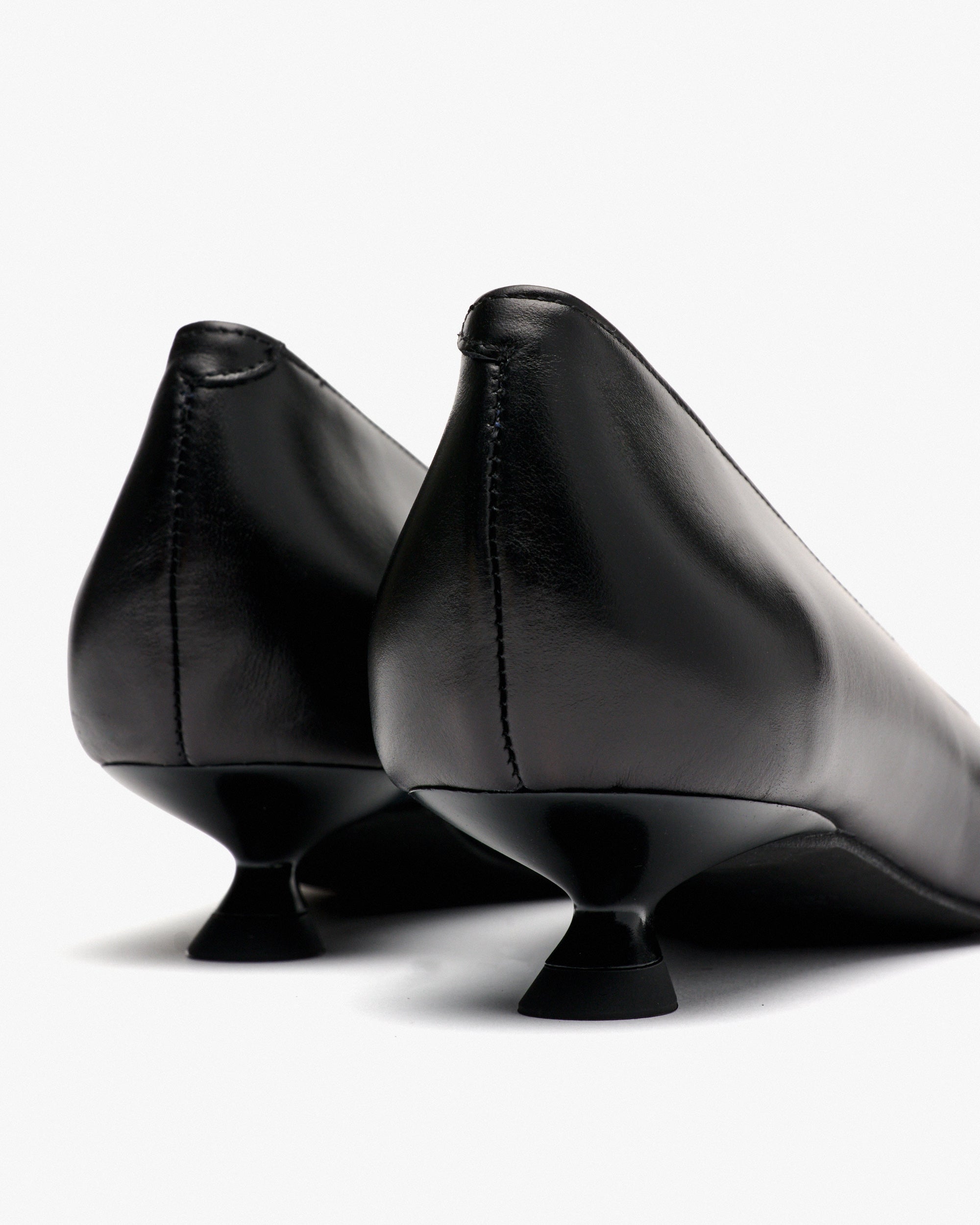 Zapatos de tacón de piel de color negro. El modelo que promete convertirse en el favorito de la temporada, gracias a su versatilidad. Un fondo de armario perfecto, apto para quienes buscan altura y comodidad a la vez.