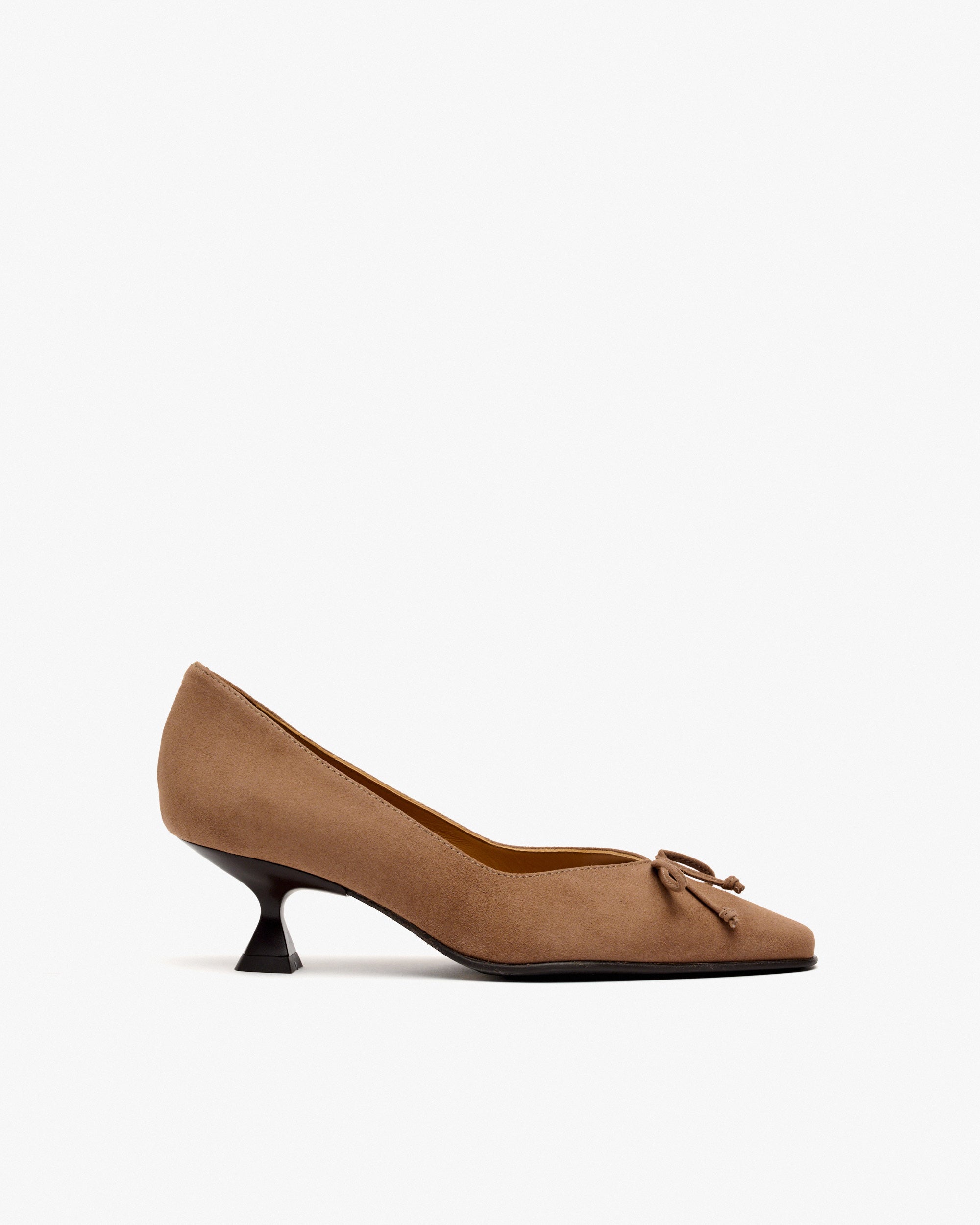 Zapatos de tacón de ante de color gris. Estos elegantes zapatos de tacón están confeccionados en ante, lo que les da un toque sofisticado y cómodo. Su diseño clásico se ve realzado por un pequeño y delicado lazo en la parte delantera, que añade un toque romántico al modelo. Perfecto para una ocasión especial o para agregar un toque de elegancia a tu look diario.