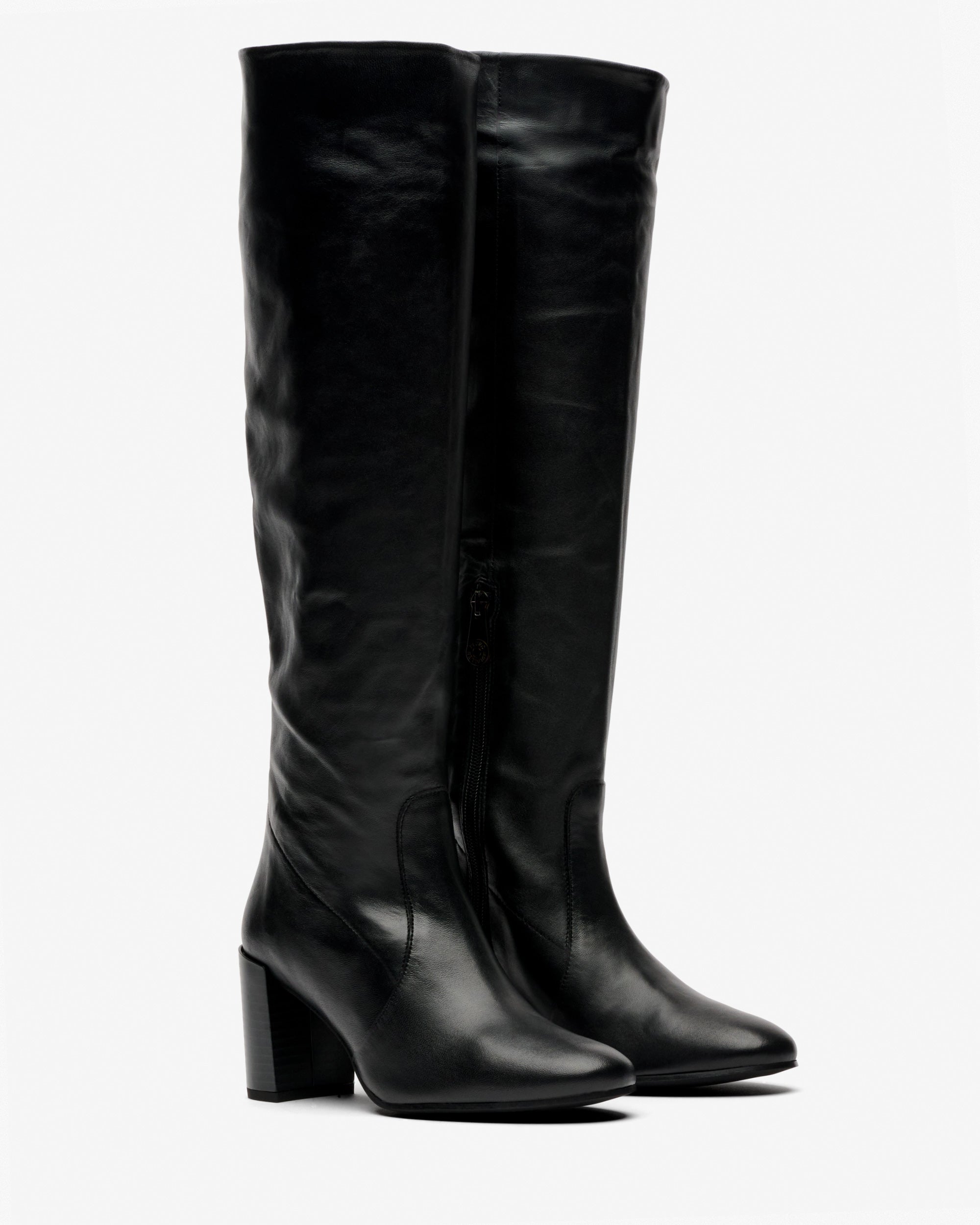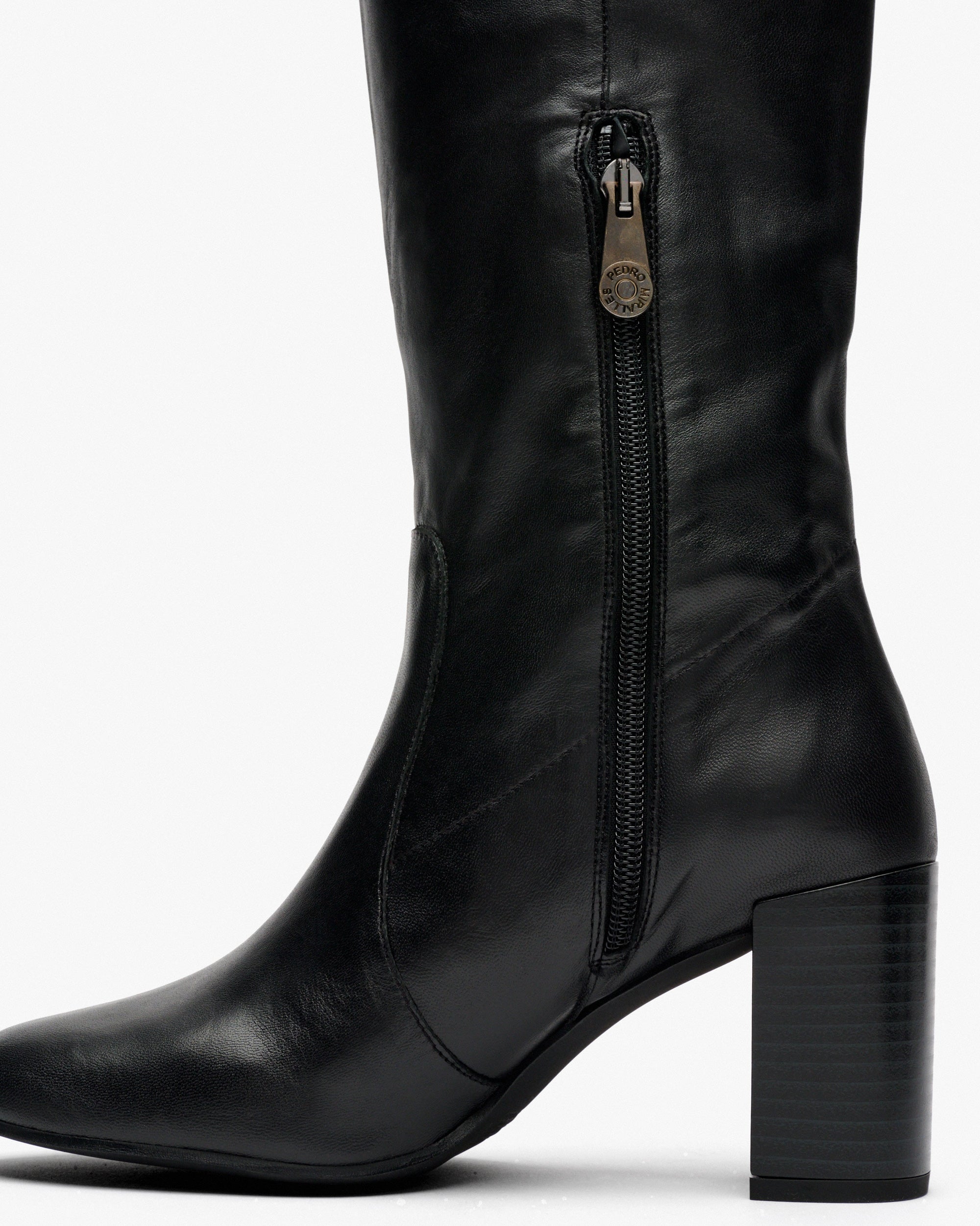 Bota de piel de color negro. Un diseño elegante elegante y refinado. Su textura suave y su acabado perfecto aportan un toque de sofisticación a cualquier atuendo. El zapato perfecto para elevar los outfits de la temporada y seguir la tendencia del ante.