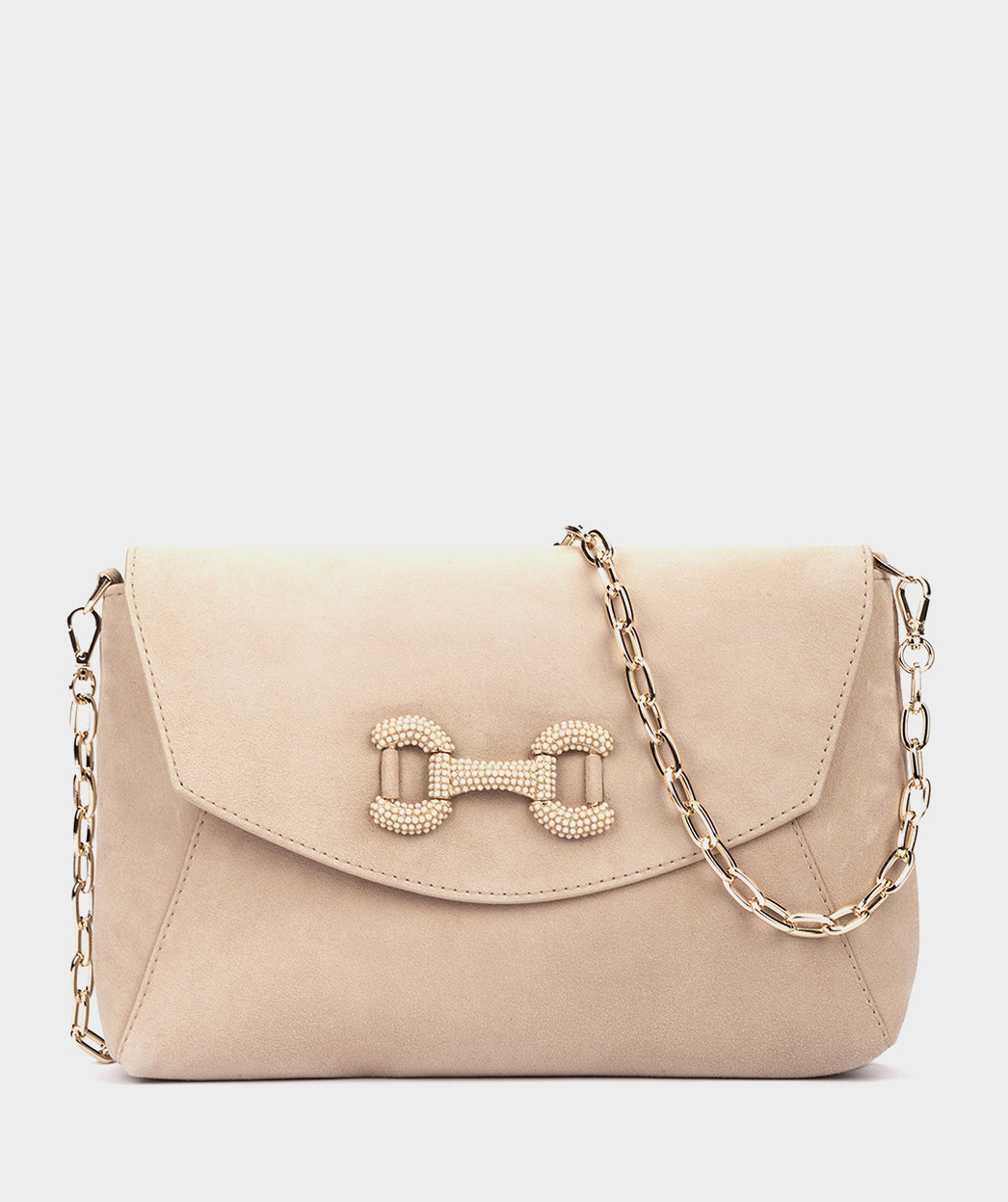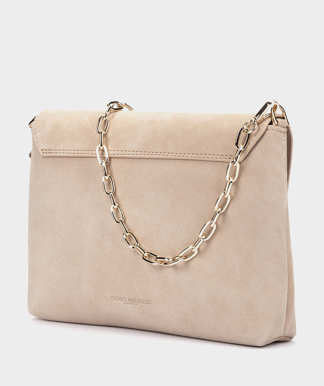 Bolso de fiesta de ante con cadena. El bolso VIESTE es ideal para lucir tanto en eventos como en una cita especial. Su cierre con imán te permitirá abrirlo y cerrarlo con total comodidad.