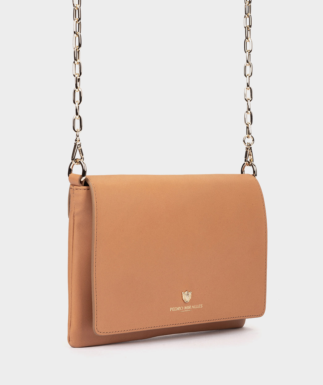 Bolso de fiesta de piel con cadena. El espacioso pero compacto modelo Ruidera será perfecto para una ocasión especial. Cuenta con cierre con imán y su cadena es de unos 50 cm de alto.