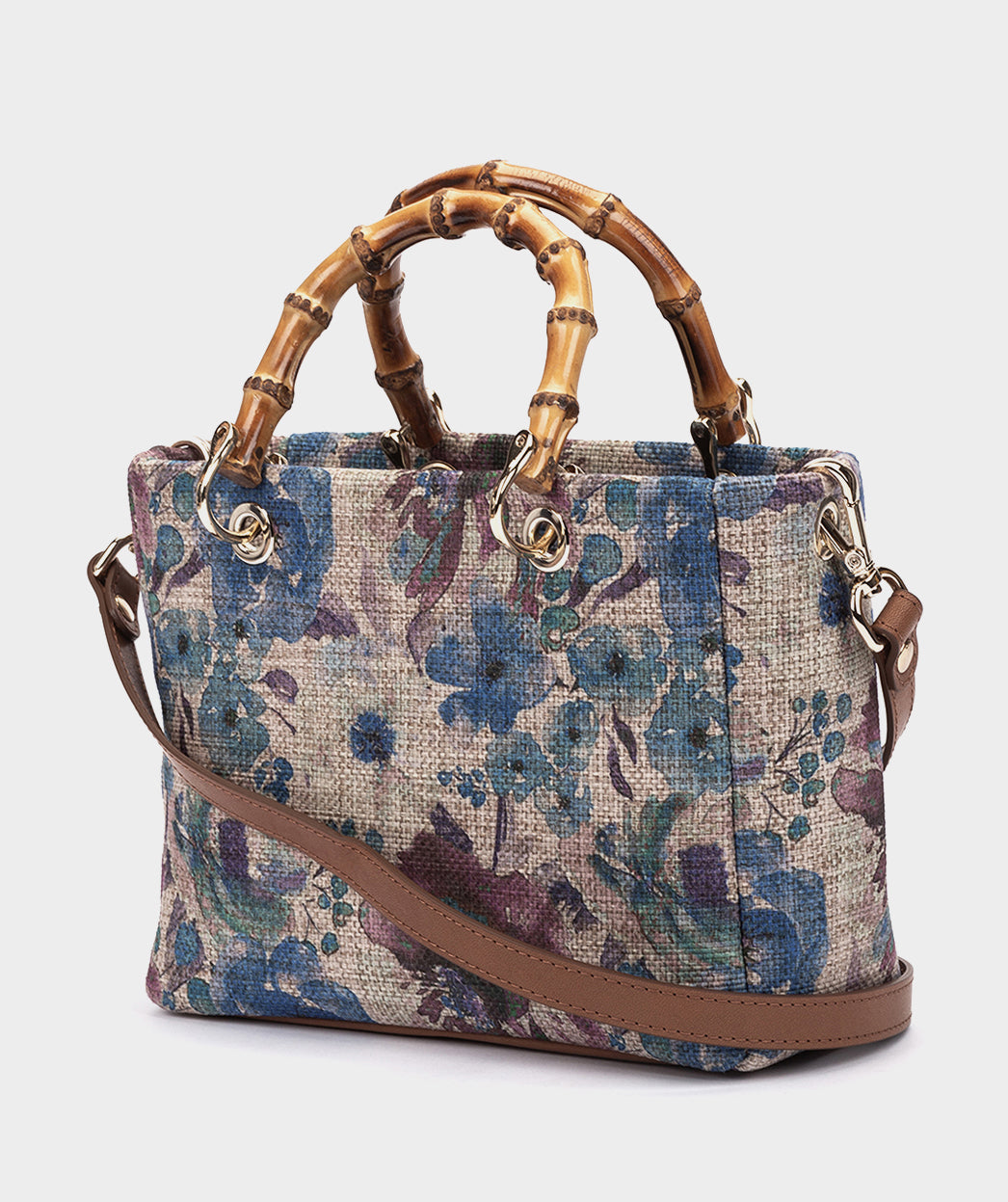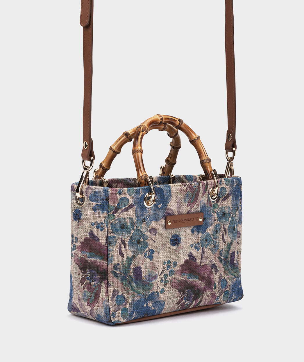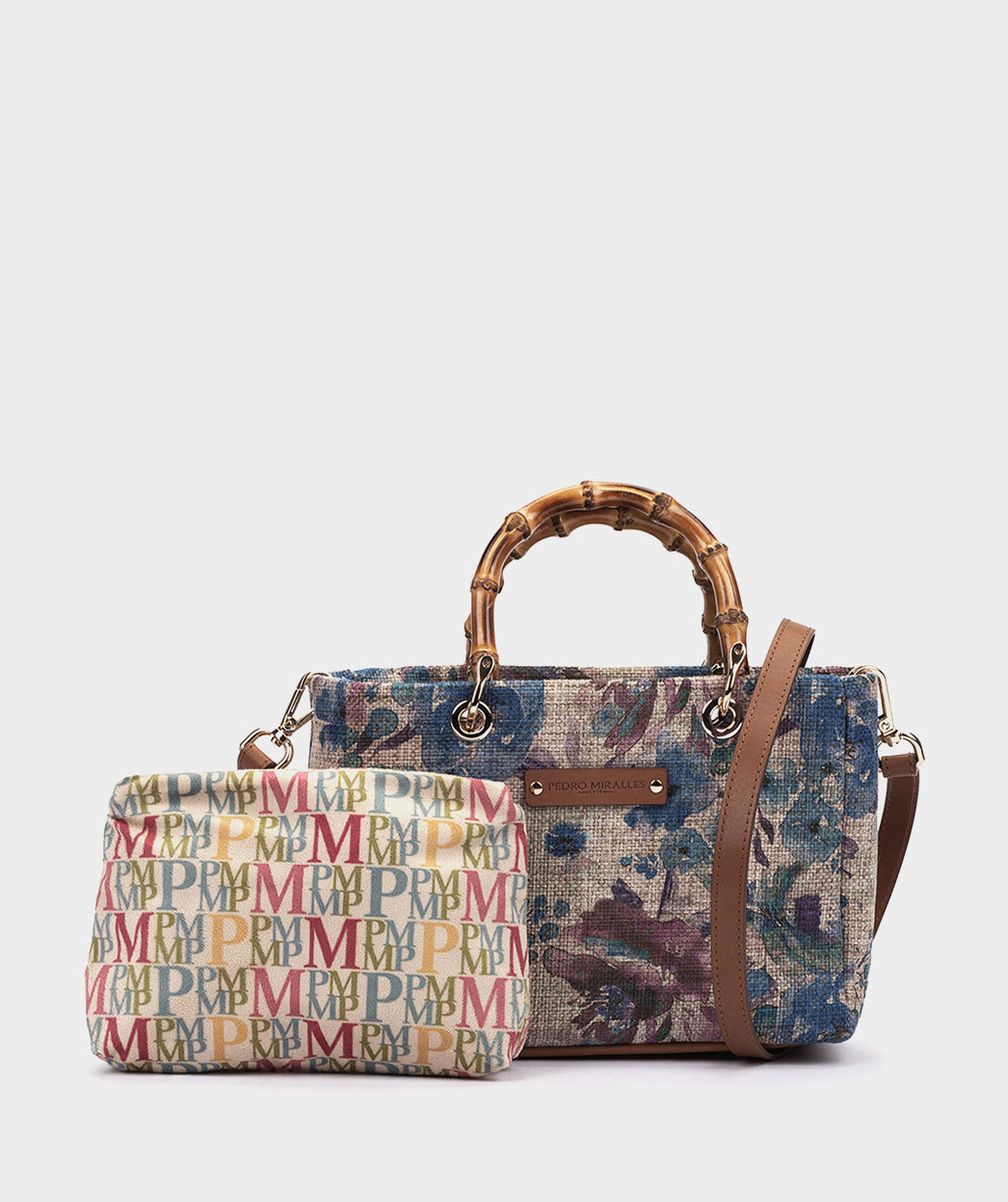 Bandolera de tejido con neceser interior. HONDURAS será la clave de tu próximo look. El estampado floral y el asa de bambú logran que este modelo sea tan original como especial. Puedes llevarlo utilizando el asa corta o el asa larga de piel, tú decides.