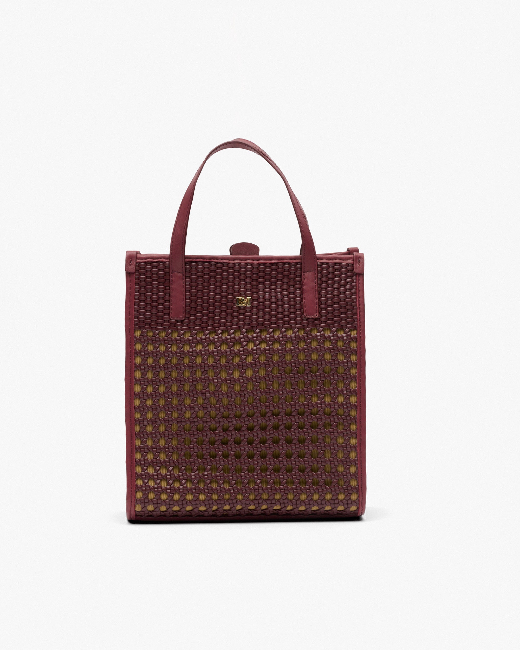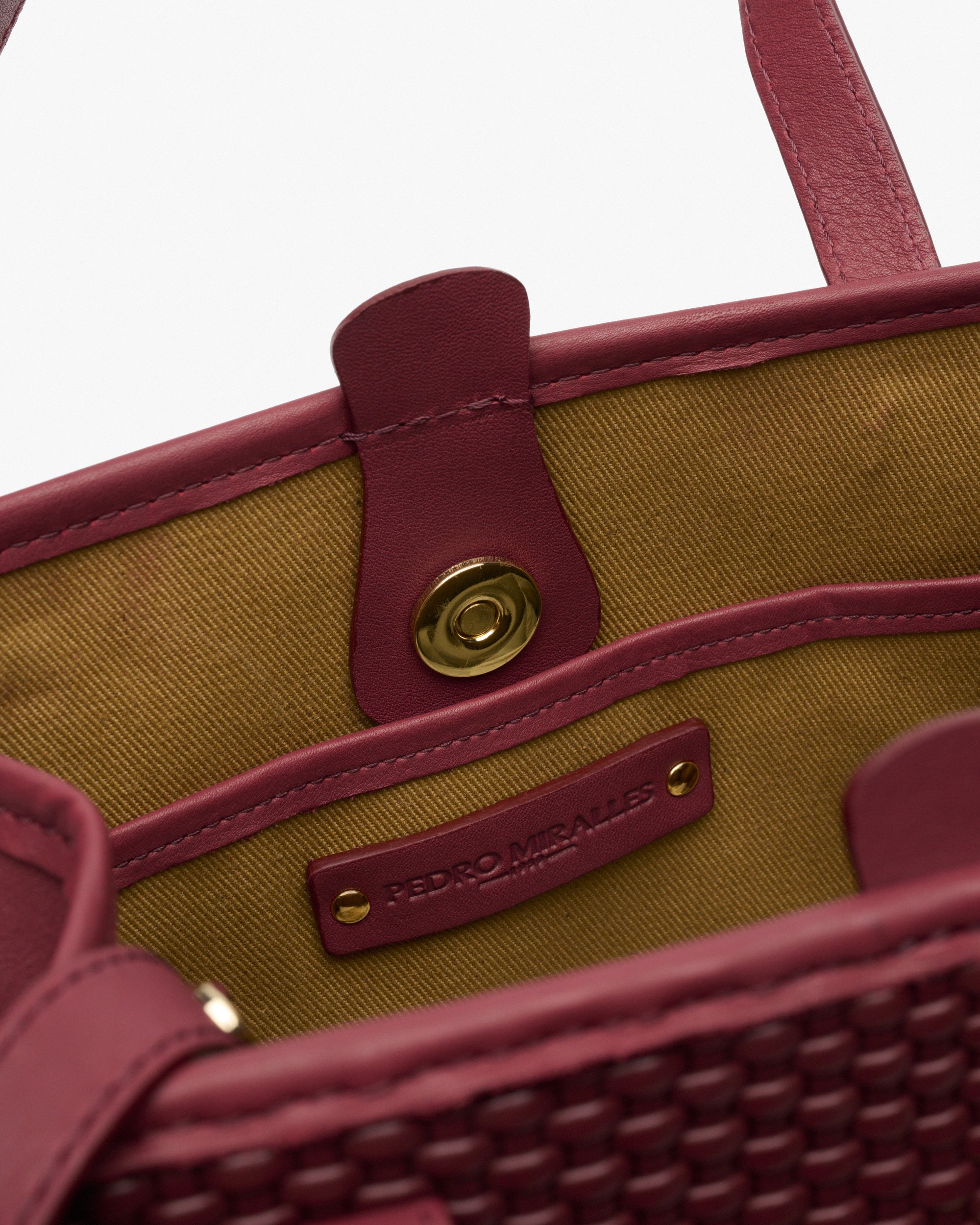 Bolso de hombro de piel trenzada de color burdeos. Un modelo perfecto para guardar todo lo que necesites en tu día a día. El bolso VISALIA destaca por su versatilidad. Cuenta con un asa de 9 cm. Puedes utilizar su asa larga para llevarlo como bandolera. Cuenta con cierre con imán y con un pequeño compartimento interior.