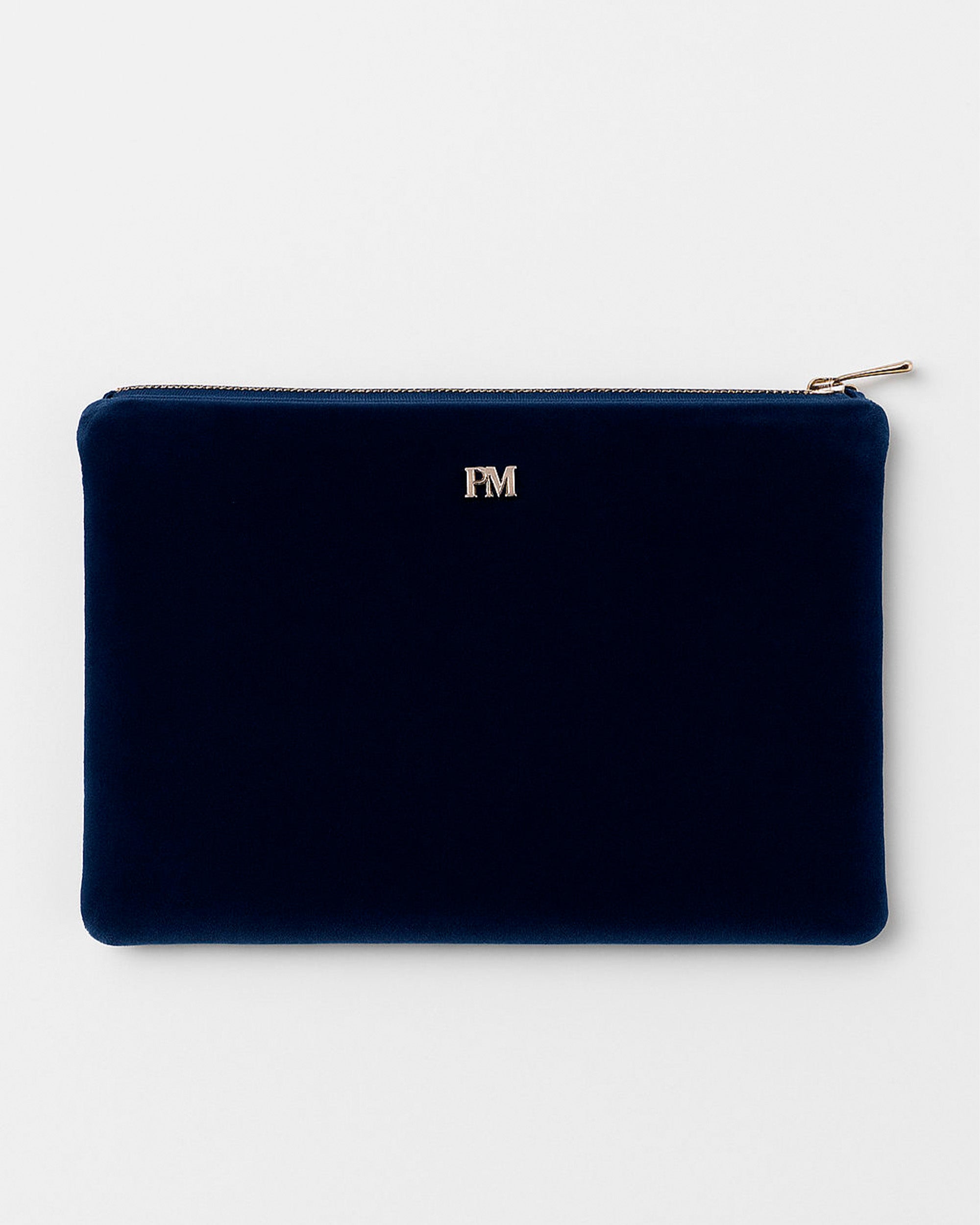 Bolso de mano de tercioelo de color azul marino. Nuestro bolso COVADONGA se convertirá en tu mejor complemento esta temporada. Su diseño compacto y práctico lo convierten en una pieza especial con la que querrás combinar todos tus looks. Cierre con cremallera. No tiene asa.