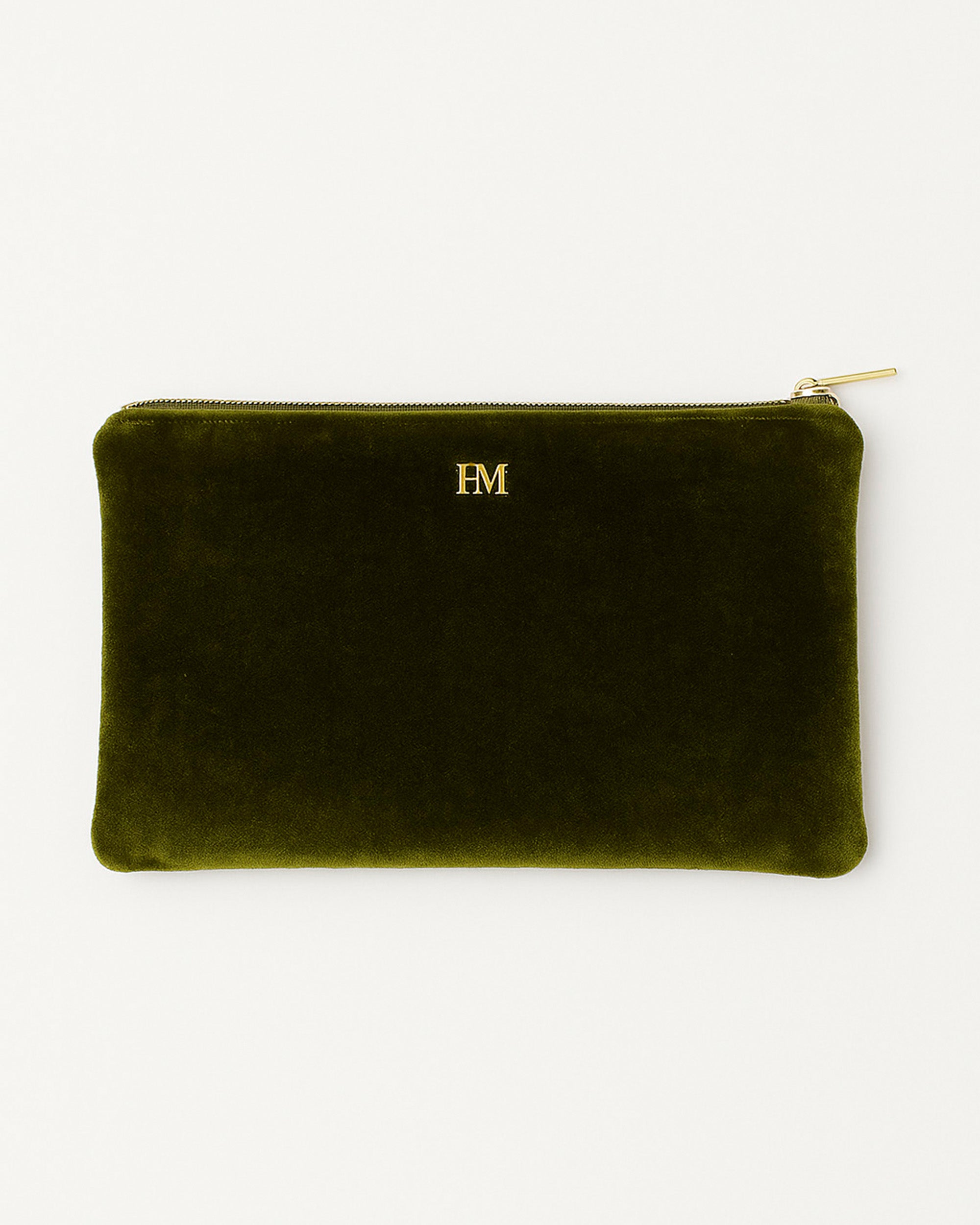Bolso de mano de tercioelo de color verde. Nuestro bolso COVADONGA se convertirá en tu mejor complemento esta temporada. Su diseño compacto y práctico lo convierten en una pieza especial con la que querrás combinar todos tus looks. Cierre con cremallera. No tiene asa.