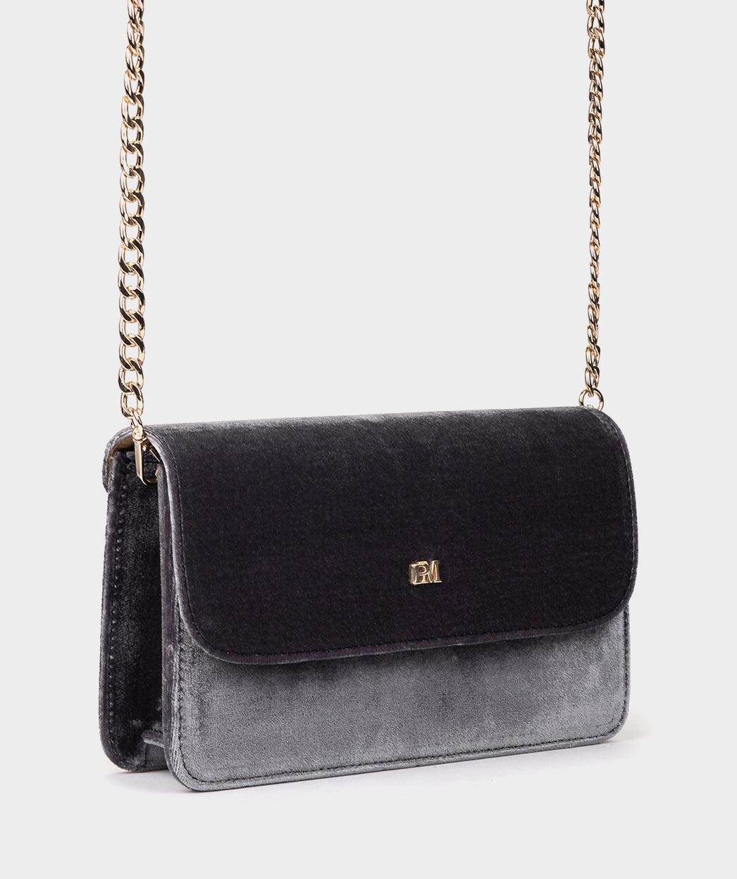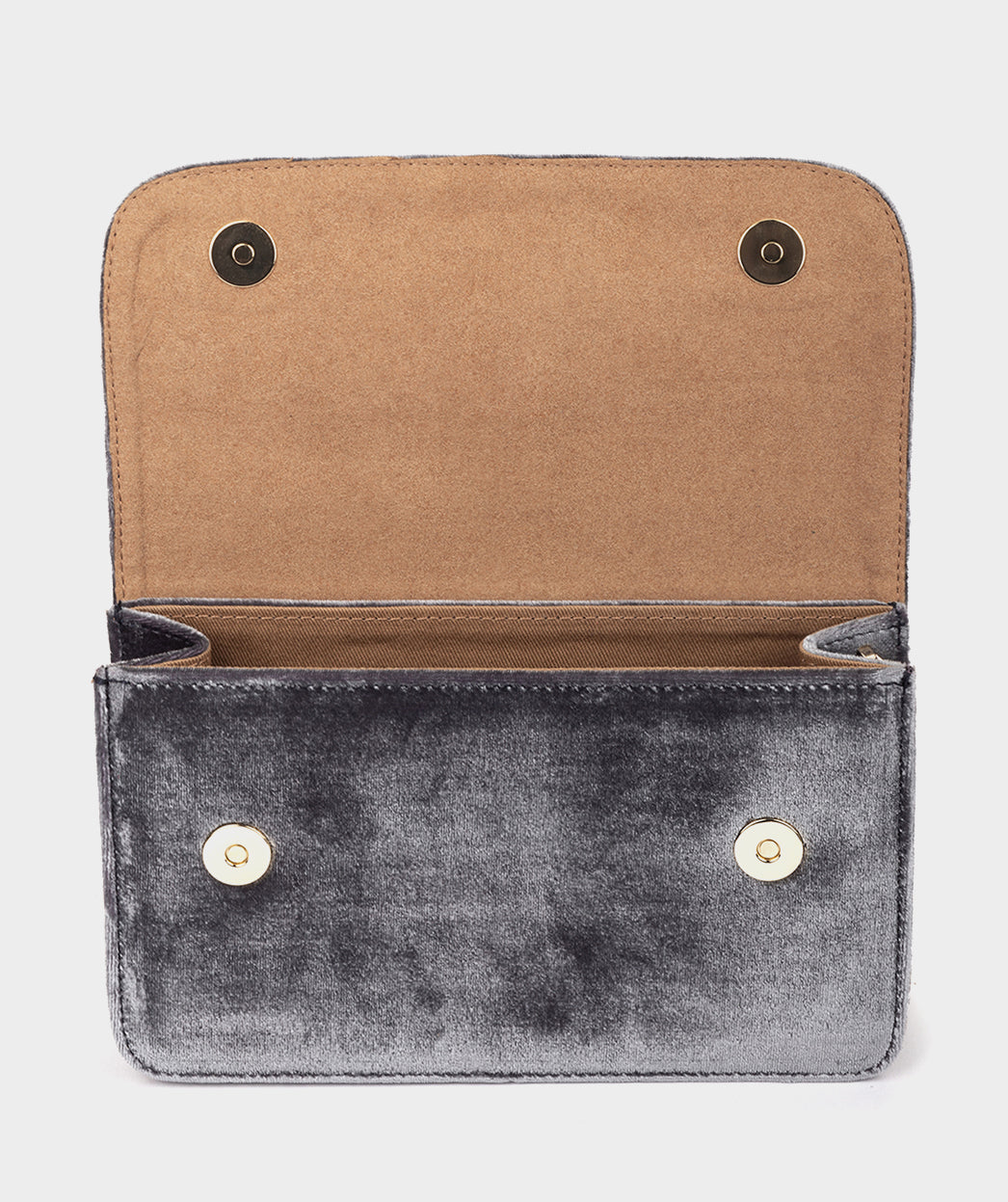 Bolso de fiesta de terciopelo de color malva con cadena. Nuestro bolso GUATEMALA se convertirá en tu mejor complemento esta temporada. Su diseño compacto y práctico lo convierten en una pieza especial con la que querrás combinar todos tus looks.