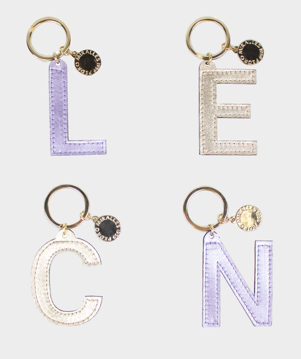 LLAVERO INICIAL DE PIEL DORADA Y LILA Metalizados - ACCESORIOS