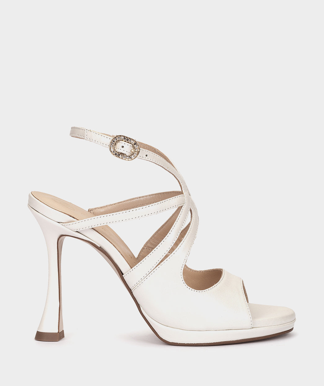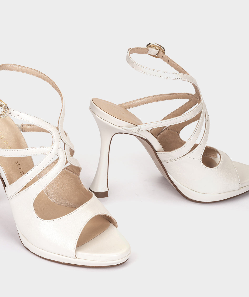 Sandalias de tacón de piel en color blanco. Su original diseño con tiras entrelazadas lo convierten en un modelo sofisticado y único. Enamórate de las sandalias ATRANI.