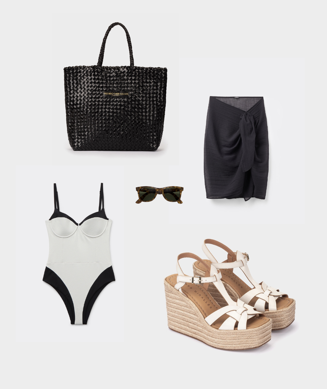 Las cuñas de esparto también pueden ser parte de un look de playa estiloso. Opta por un bañador de estilo retro y un pareo anudado a la cintura. Añade unas gafas de sol grandes y un bolso de mimbre para completar el conjunto.