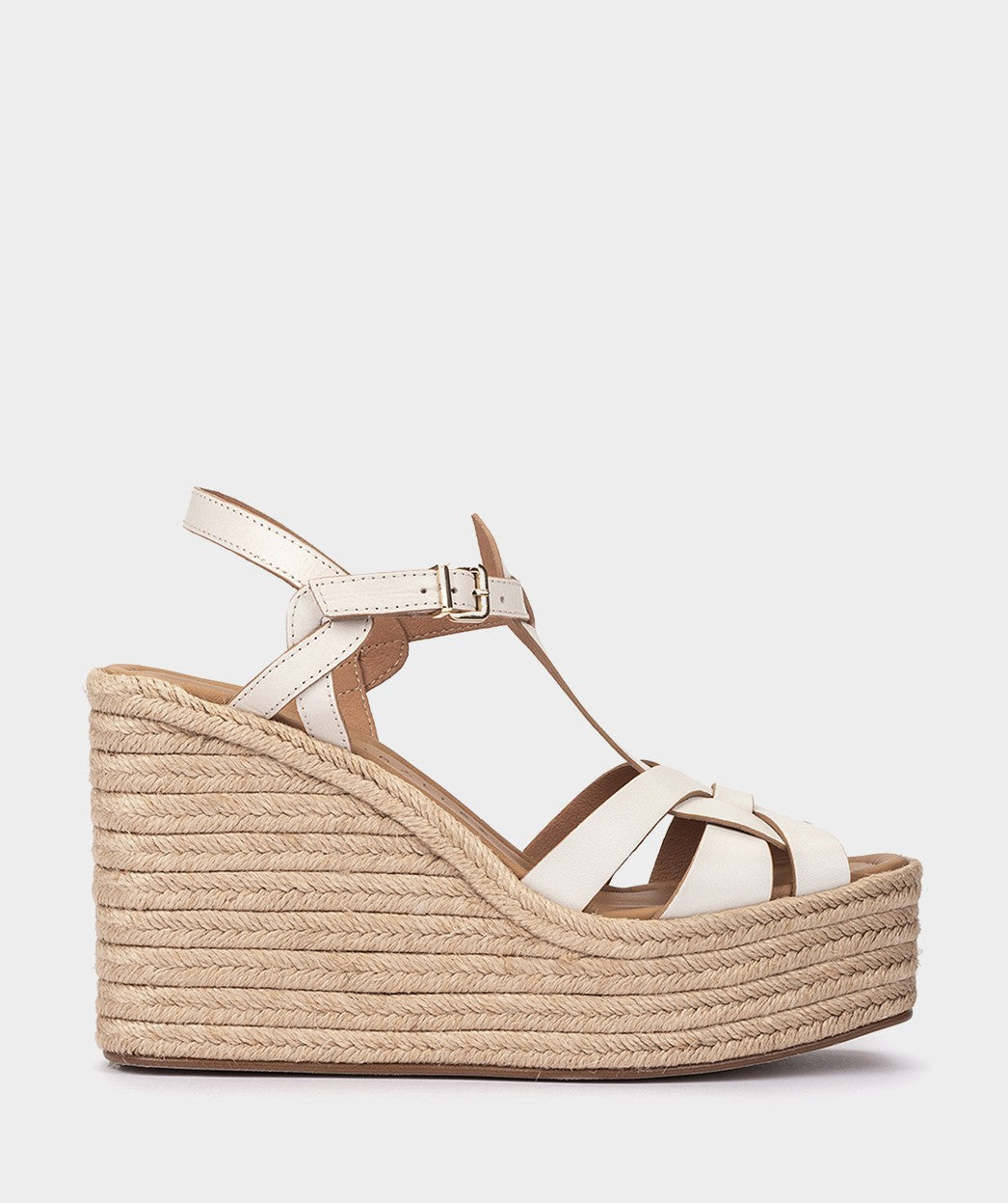 Los looks monocromáticos siempre funcionan, y un total white con cuñas de esparto es una apuesta segura. Opta por un pantalón fluido blanco y una blusa en el mismo tono. Para un toque especial, elige unas cuñas con algún elemento que contraste, como tiras en cuero o detalles en yute.