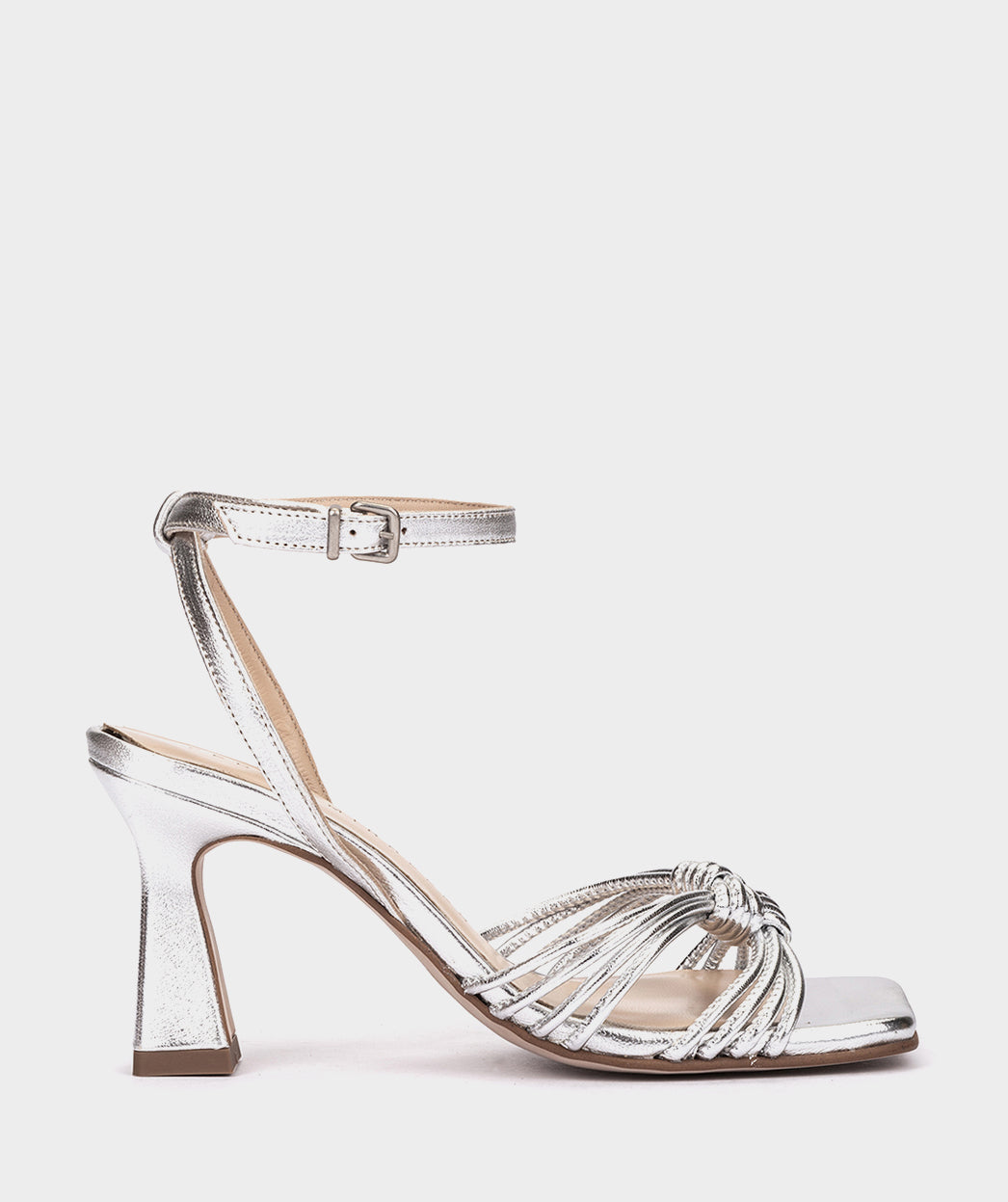 Sandálias de tacão em pele metalizada. O modelo Santa Mónica destaca-se pelo seu design original e pela combinação de materiais para conseguir um ajuste único e confortável. Com estas sandálias de tacão em pele vai atrair todos os olhares.