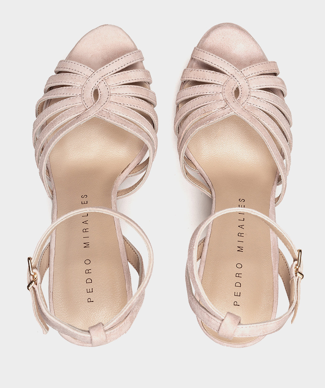 Sandália salto plataforma camurça nude. O modelo Etiópia consegue realçar a silhueta do pé graças à preparação da parte superior com tiras. Fecho de tira no tornozelo. Um modelo original e elegante pensado para os seus eventos mais especiais.