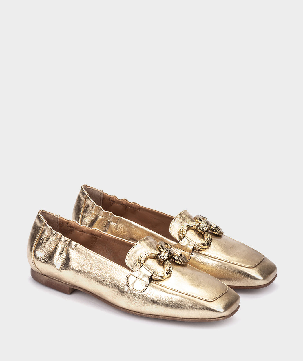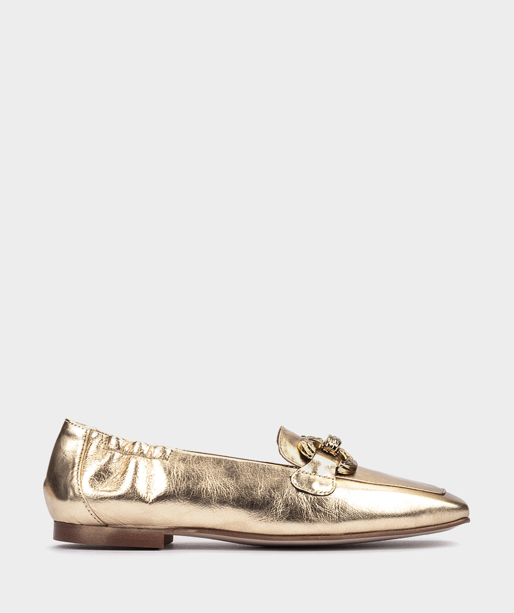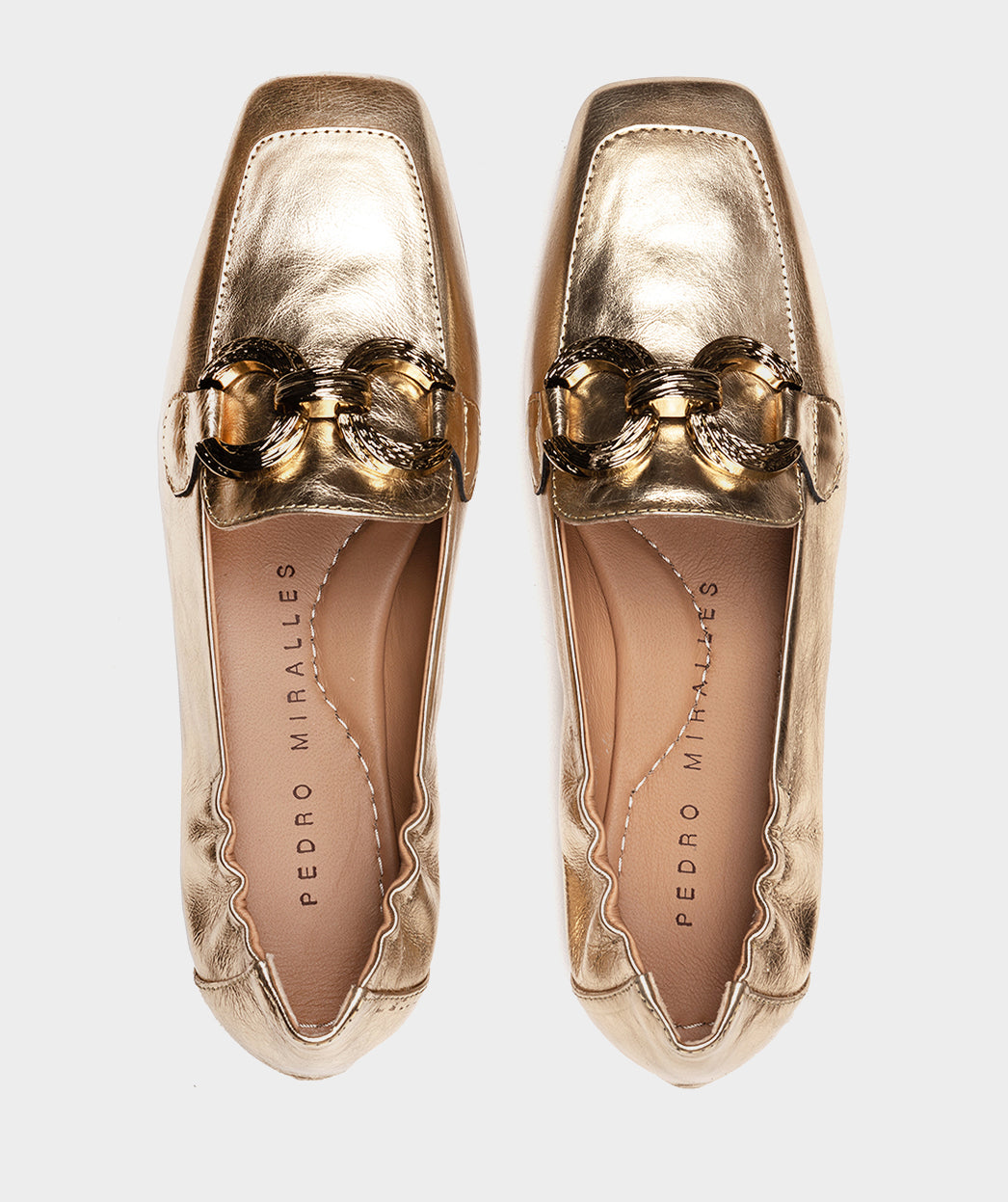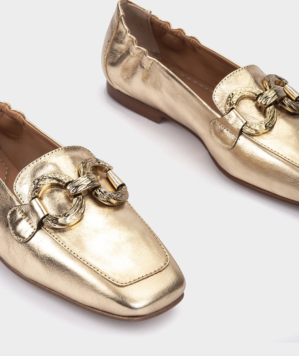 Mocassins planos de couro metalizado. Um design atemporal feito com os melhores materiais. As ferragens douradas adicionam elegância e estilo ao modelo Sevilla.