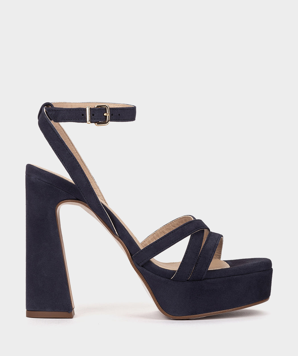 Sandálias de salto alto confeccionadas em camurça azul marinho. As sandálias CIVITELLA destacam-se pelo seu design elegante. A combinação das tiras no cabedal com o salto retrô e a plataforma dão personalidade ao modelo. Será o seu melhor aliado nos próximos eventos da temporada.