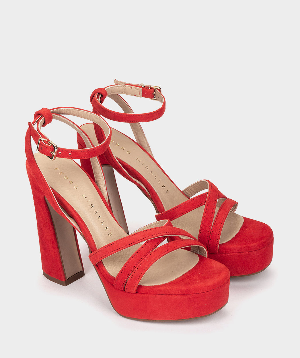 Sandálias de salto alto confeccionadas em camurça vermelha. As sandálias CIVITELLA destacam-se pelo seu design elegante. A combinação das tiras no cabedal com o salto retrô e a plataforma dão personalidade ao modelo. Será o seu melhor aliado nos próximos eventos da temporada.