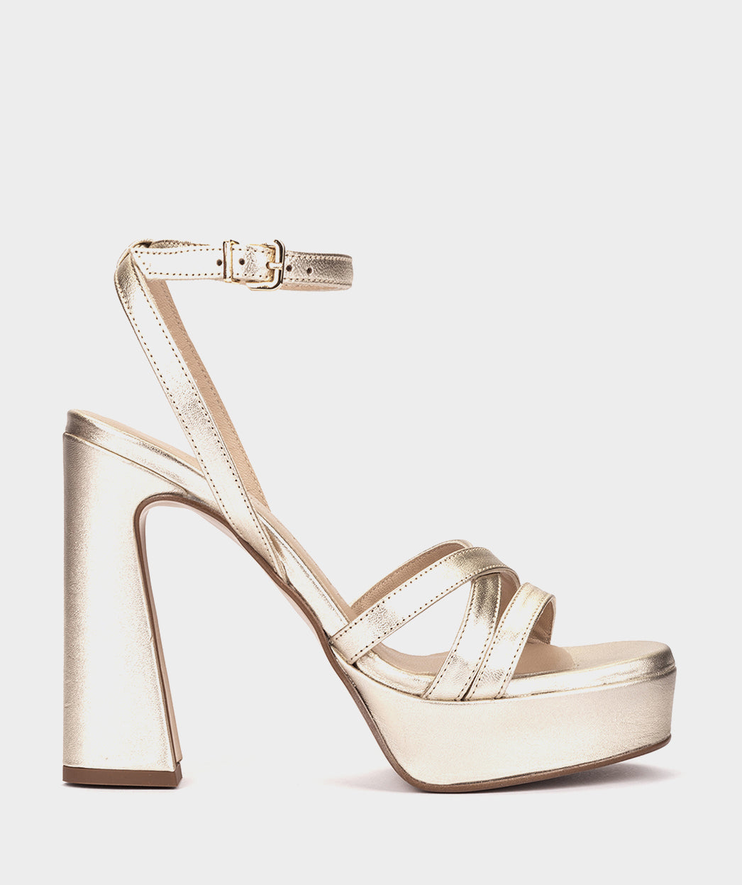 Sandálias de salto alto confeccionadas em couro metálico na cor platina. As sandálias CIVITELLA destacam-se pelo seu design elegante. A combinação das tiras no cabedal com o salto retrô e a plataforma dão personalidade ao modelo. Será o seu melhor aliado nos próximos eventos da temporada.