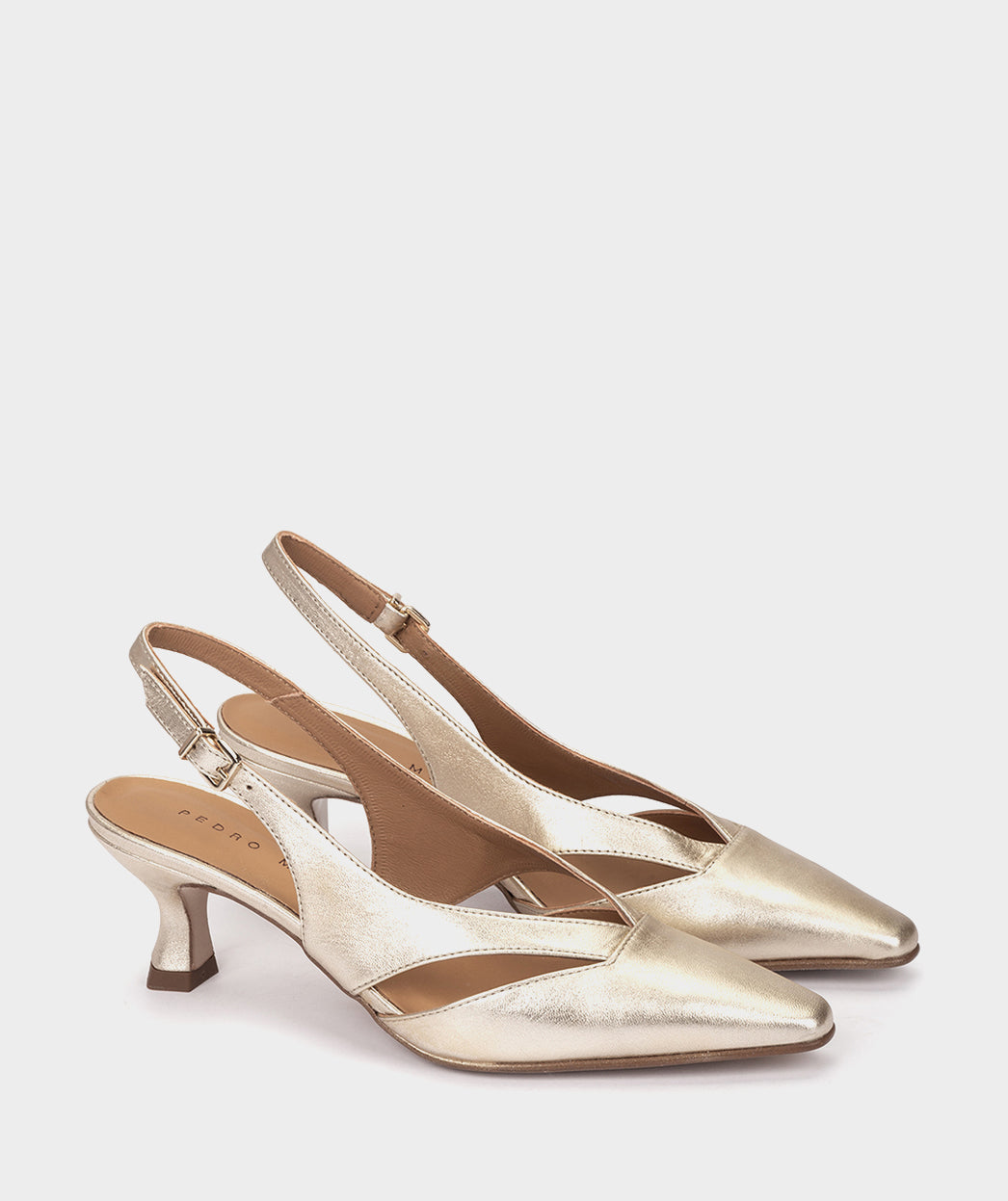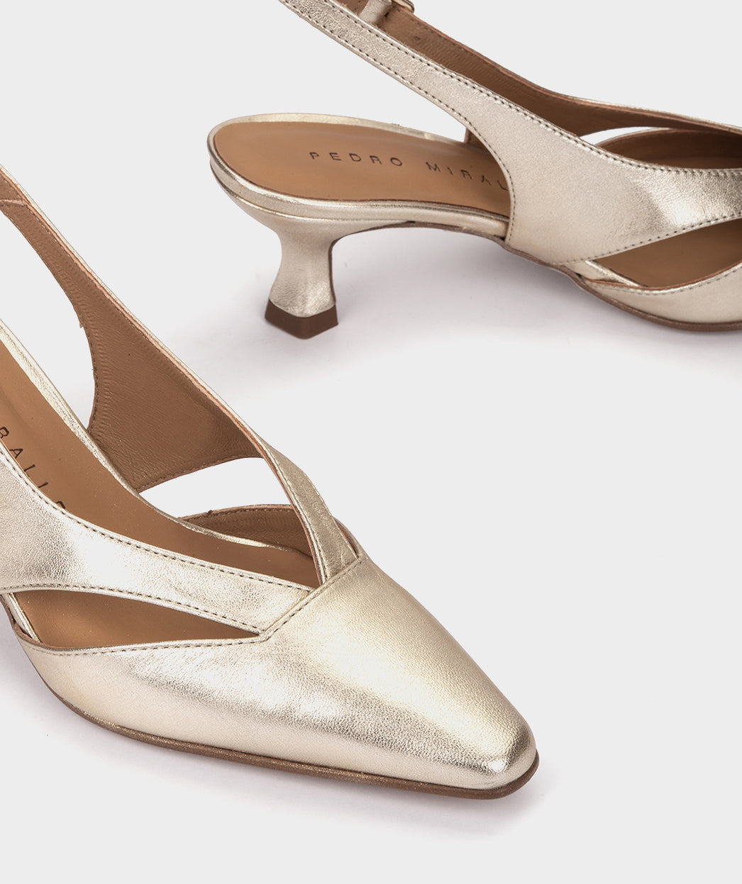Sapatos tipo slingback de salto baixo e bico fino feitos de couro metálico. Eles são feitos de couro macio cortado para garantir um design exclusivo. Estes sapatos não só manterão os seus pés confortáveis, mas também elegantes. Adicione os sapatos Tineo à sua coleção de calçados e você não ficará desapontado!
