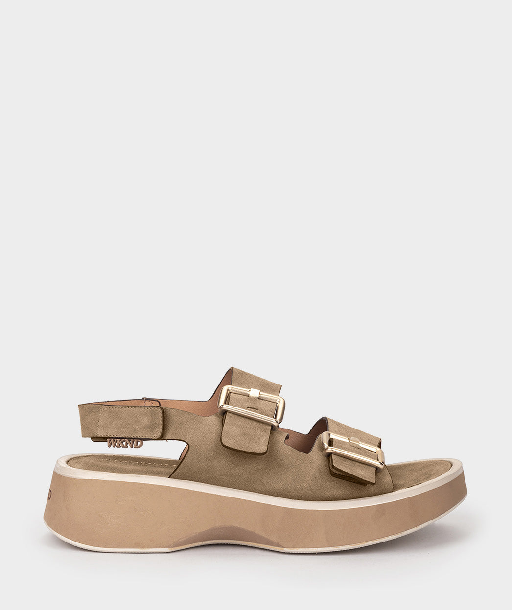 Sandálias de camurça bege. Um design casual e moderno para um uso confortável no verão. Uma escolha perfeita para aproveitar os passeios de verão. Possuem fecho de velcro na parte de trás e as fivelas no cabedal permitem que se ajustem ao seu pé para um suporte ideal.
