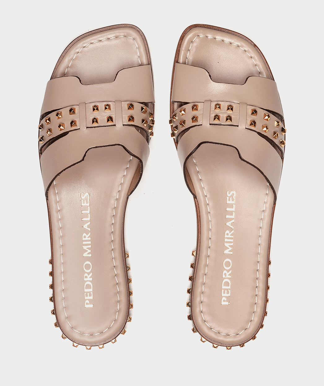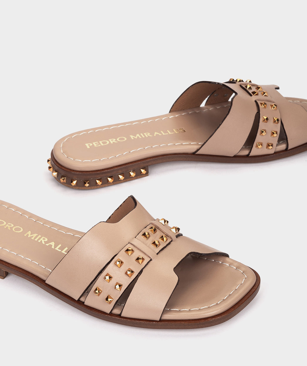 Sandálias rasas em pele na cor nude. Tornar-se-ão o calçado perfeito para qualquer ocasião. Serão também ideais para elevar qualquer roupa de verão.