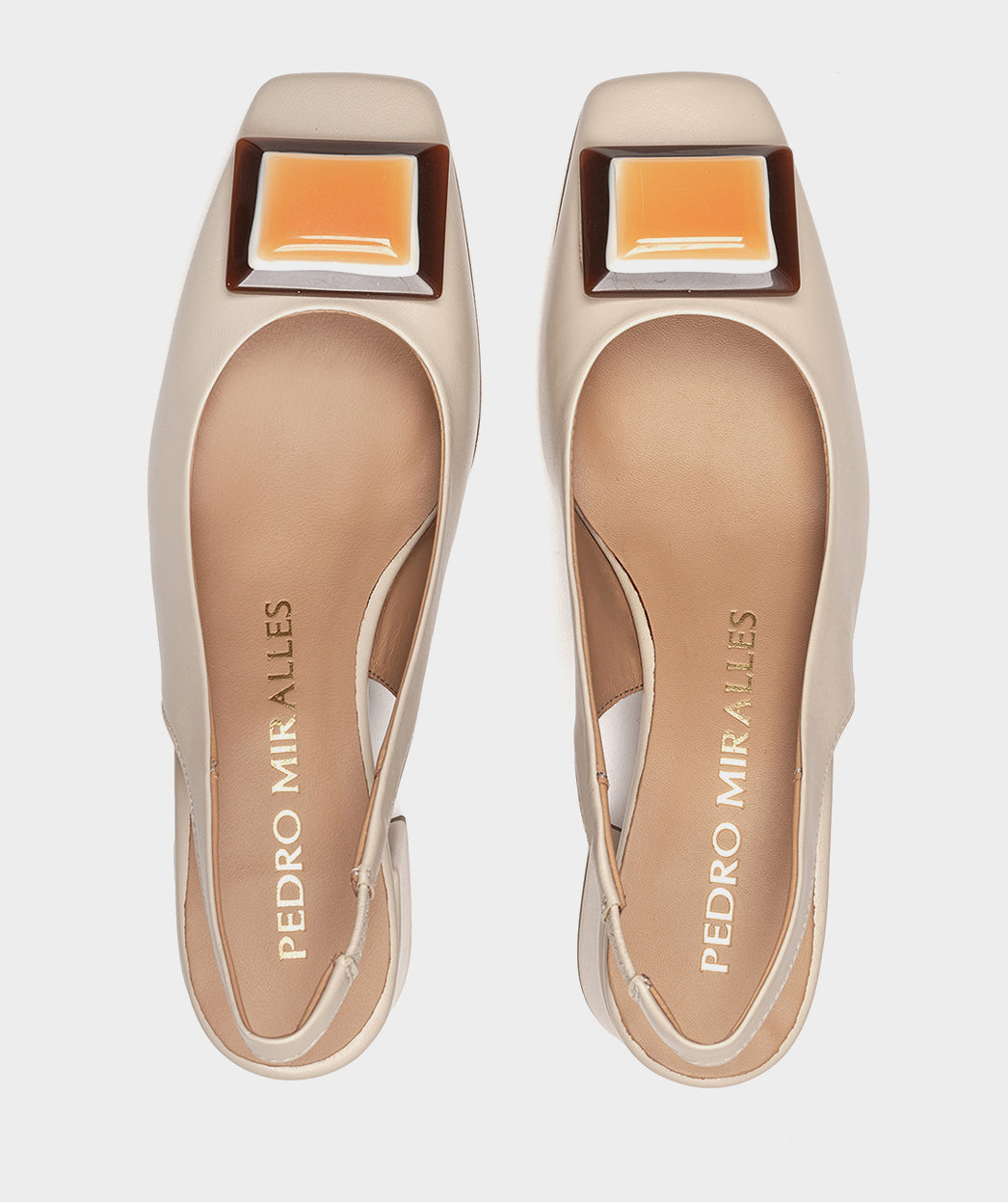 Sapatos de salto slingback em pele bege