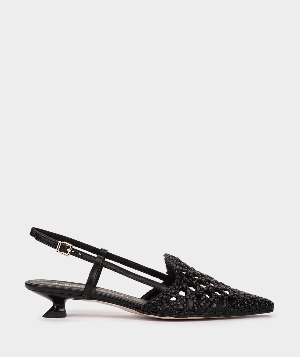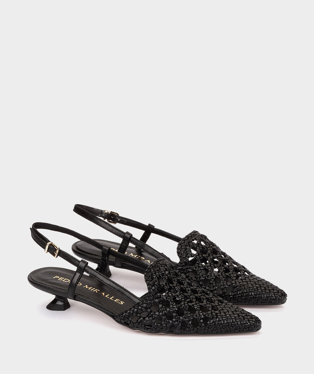Sapatos pretos trançados com salto baixo. Um modelo que se destaca pela sua silhueta original, cuja parte superior cobre o peito do pé. Uma opção versátil para exibir onde quer que você vá.