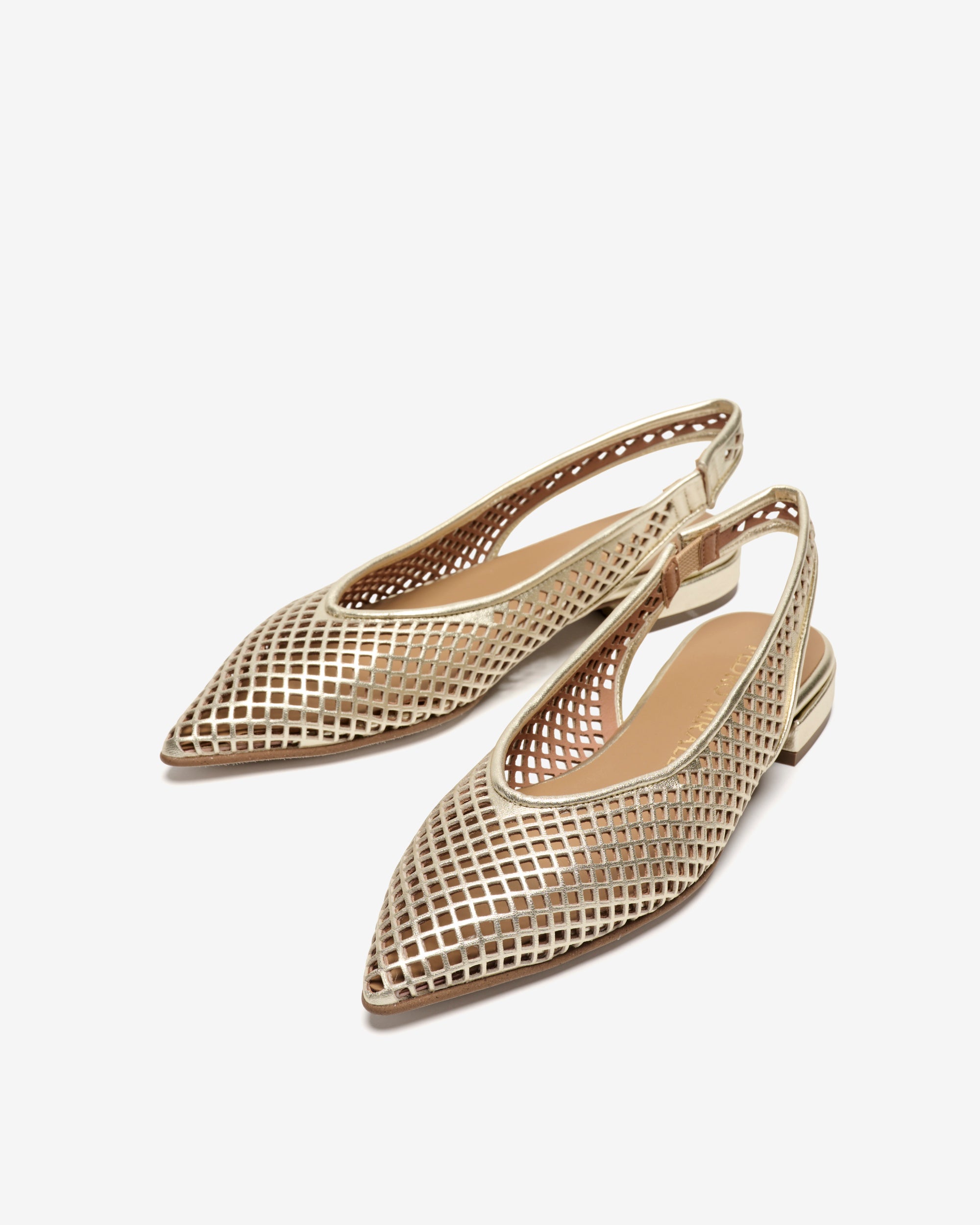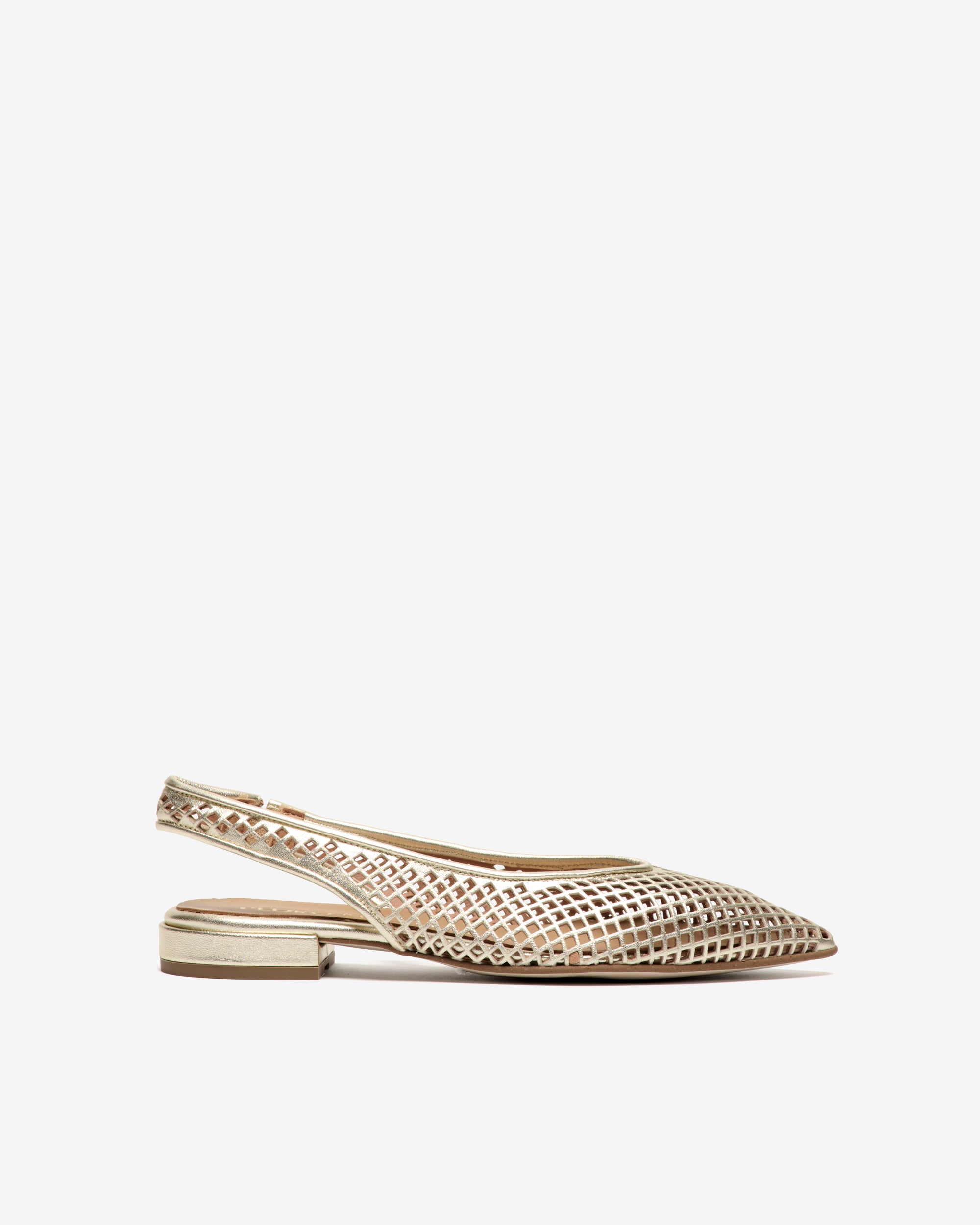 Sapatos slingback planos em couro metálico platinado. Um design que se destaca pelo seu efeito de silhueta. O elástico lateral permite que o tênis seja colocado confortavelmente, além de um ajuste ideal.
