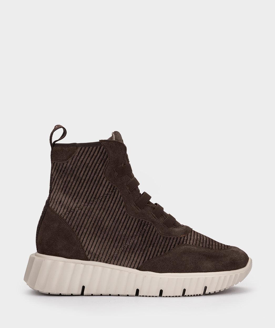 Botim esportivo confeccionado em tecido marrom. O calçado que vai se tornar protagonista dos seus looks mais casuais, seja no campo ou na cidade. Um modelo que se destaca pelo conforto, cujo design chama a atenção pela combinação de materiais que o compõem. Possui palmilha removível.