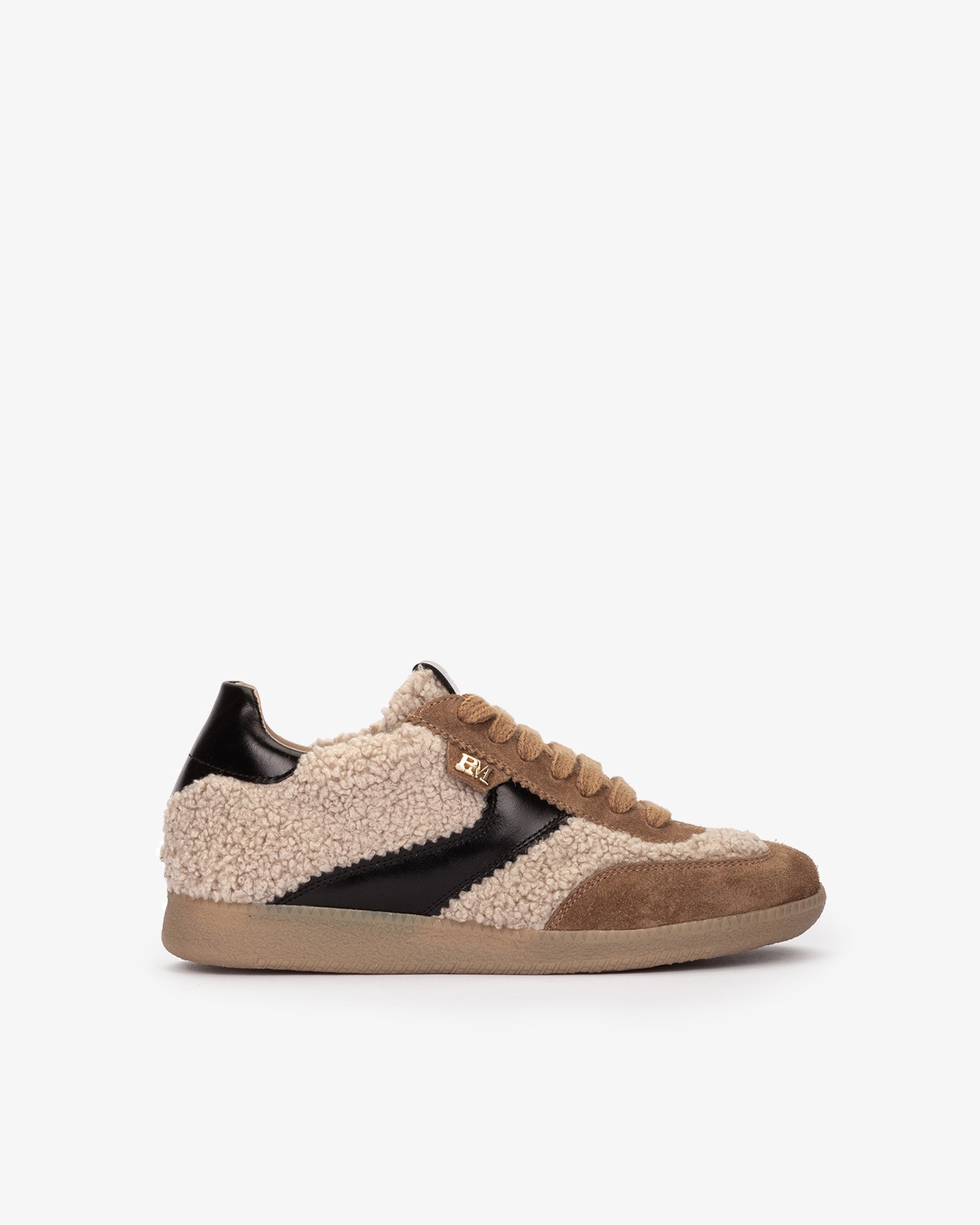 Calçado desportivo em tecido com efeito de pele de carneiro castanha. Os ténis INDIANA oferecem um visual moderno, graças à sua textura original. Com os seus atacadores e acabamento cuidado, combinam estilo e conforto para o uso diário.