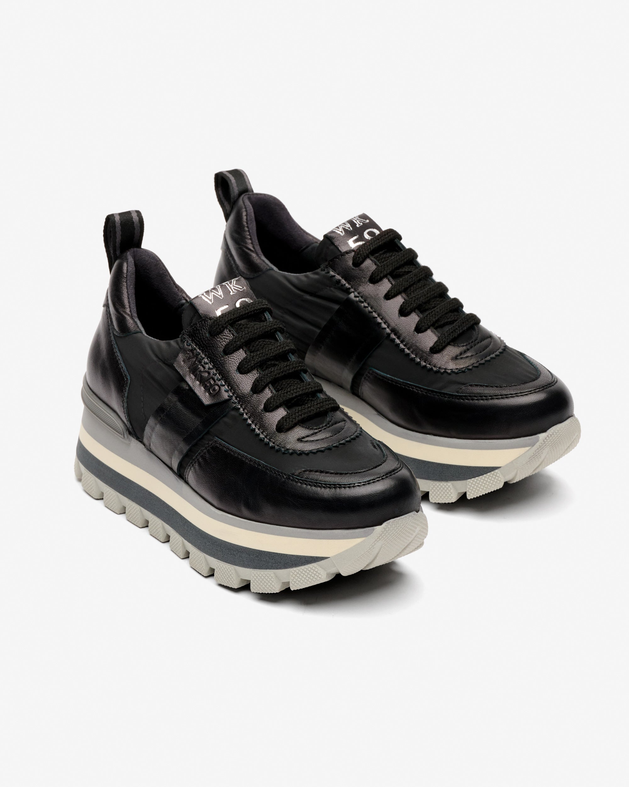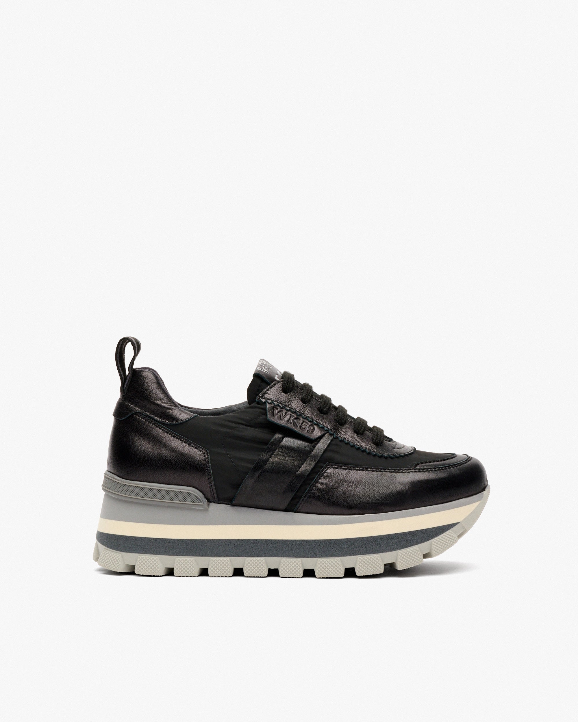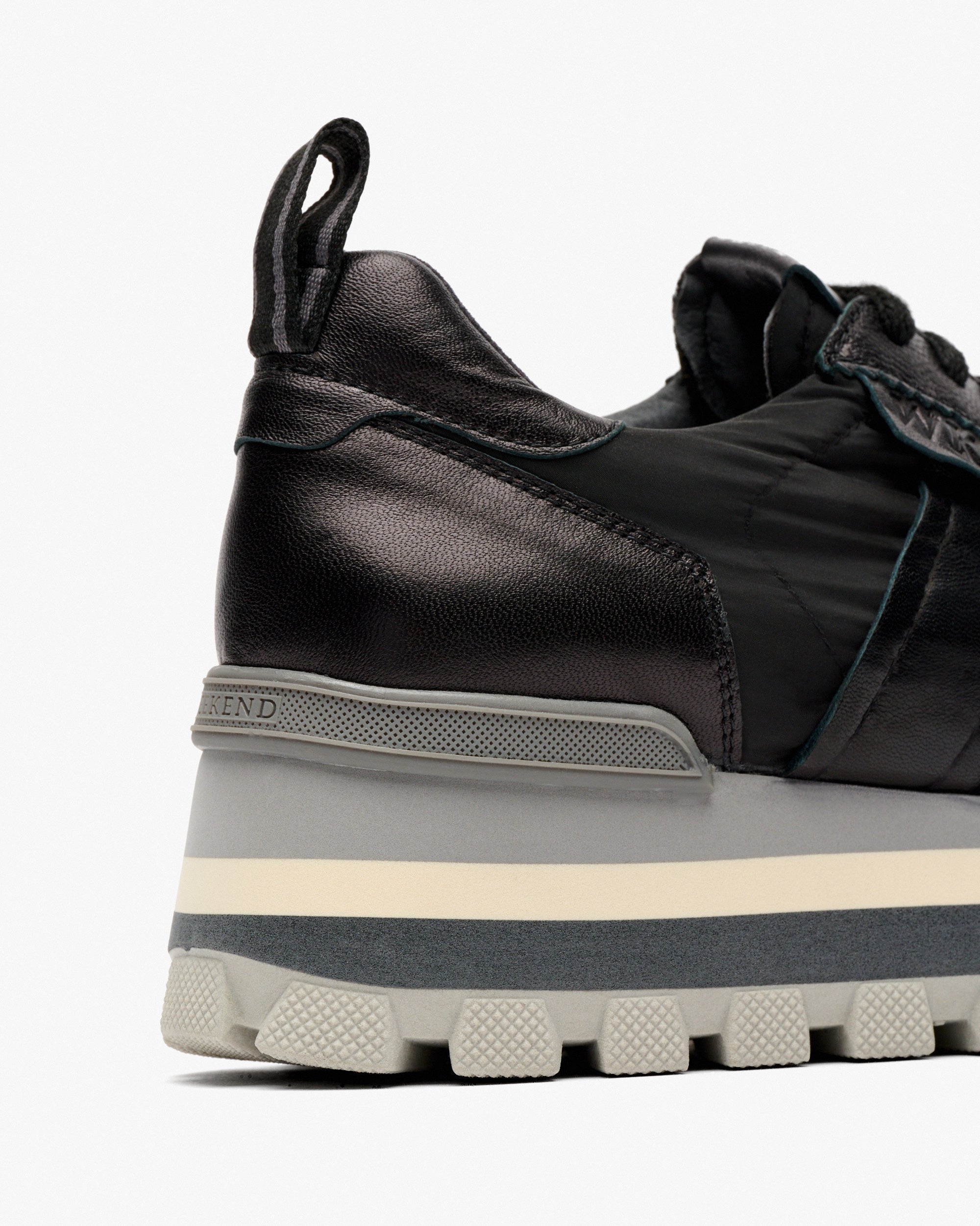 Calçado desportivo em tecido preto. Projetado para os amantes de calçados esportivos mais ousados, nosso modelo GORDES se tornará o seu favorito da temporada de inverno. Seu design conta com detalhes como a combinação de tecidos, cadarços elásticos e plataforma tricolor; resultando em um modelo de 10. Possui palmilha removível.