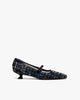 Salto alto em tecido estampado preto. O detalhe da tira de fivela no peito do pé eleva a originalidade do modelo, além de ser perfeito para um ajuste e suporte perfeitos. Perfeito para completar tanto um outfit formal como um outfit mais casual. Um toque de elegância que não passa despercebido!