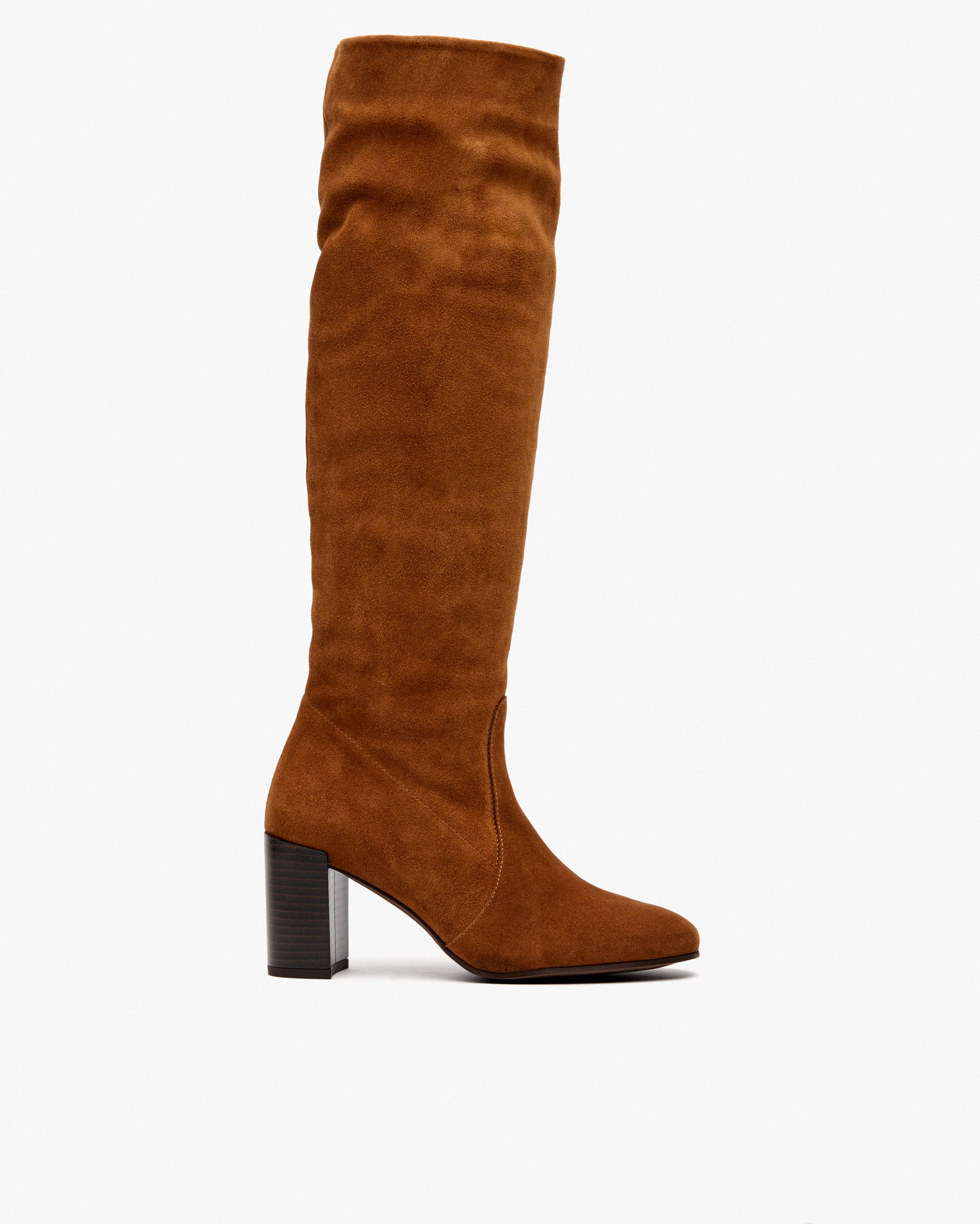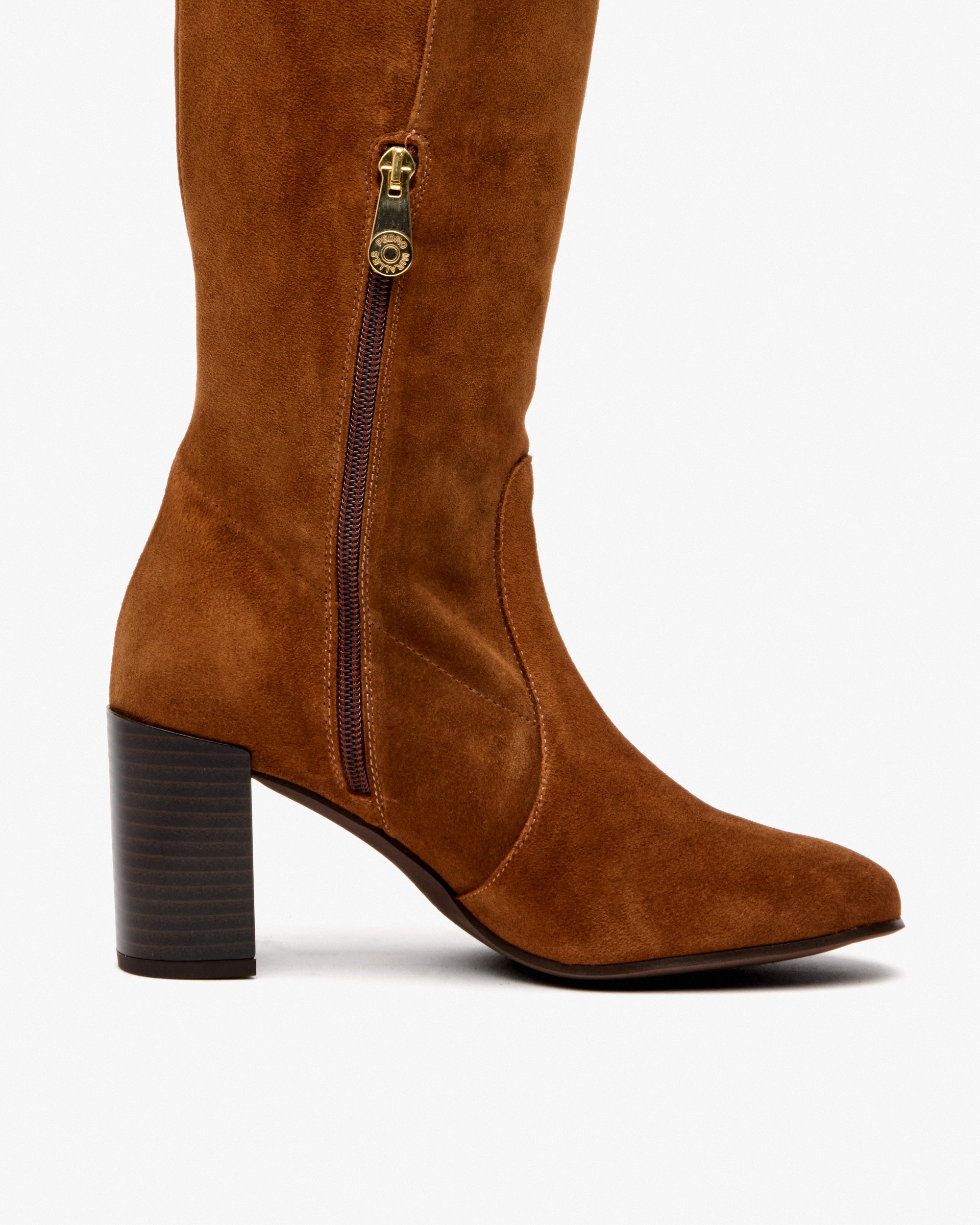 Bota de camurça marrom. Um design elegante, elegante e refinado. Sua textura suave e acabamento perfeito adicionam um toque de sofisticação a qualquer roupa. O sapato perfeito para elevar os looks da estação e seguir a tendência da camurça.