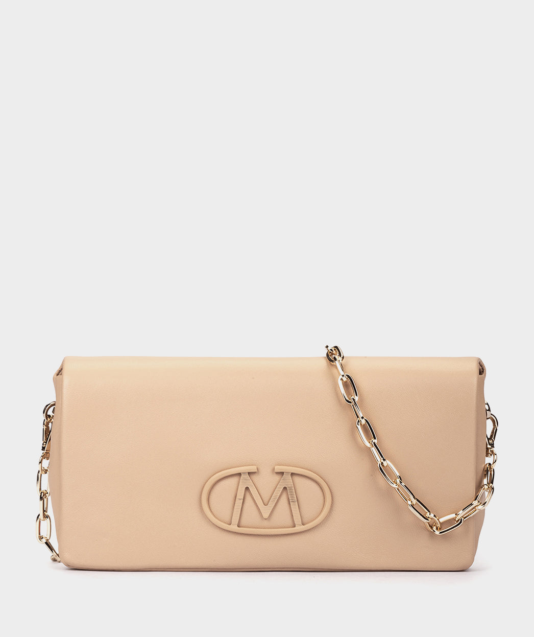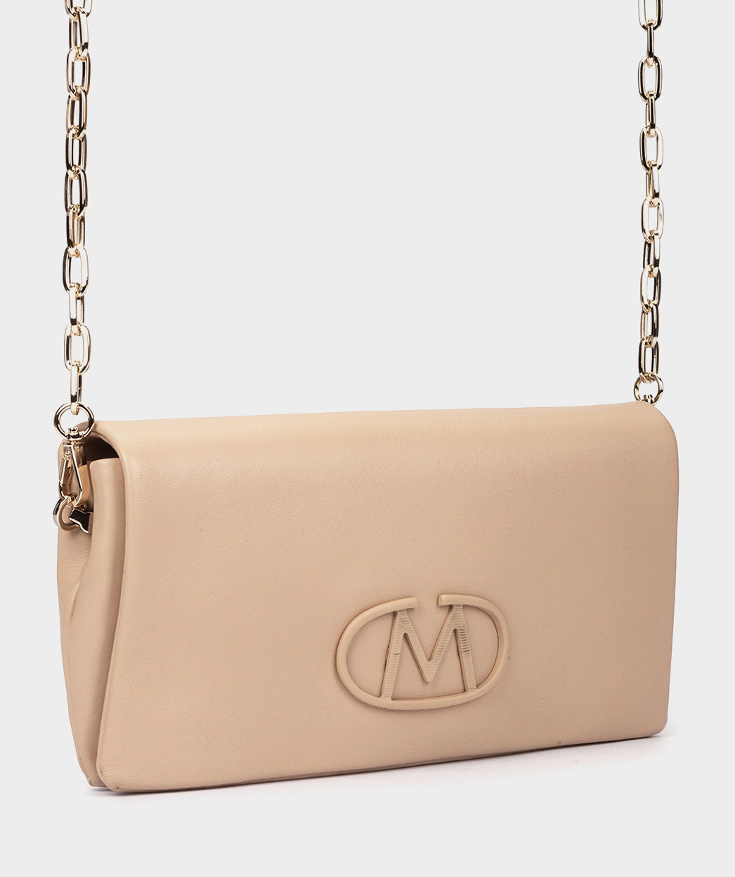 Bolsa de festa em couro bege com corrente. Você vai adorar a bolsa GALENDE se o que procura é um modelo com personalidade própria, com fecho magnético. Você pode usá-la como bolsa ou usar sua elegante corrente para carregá-la no ombro ou na transversal.