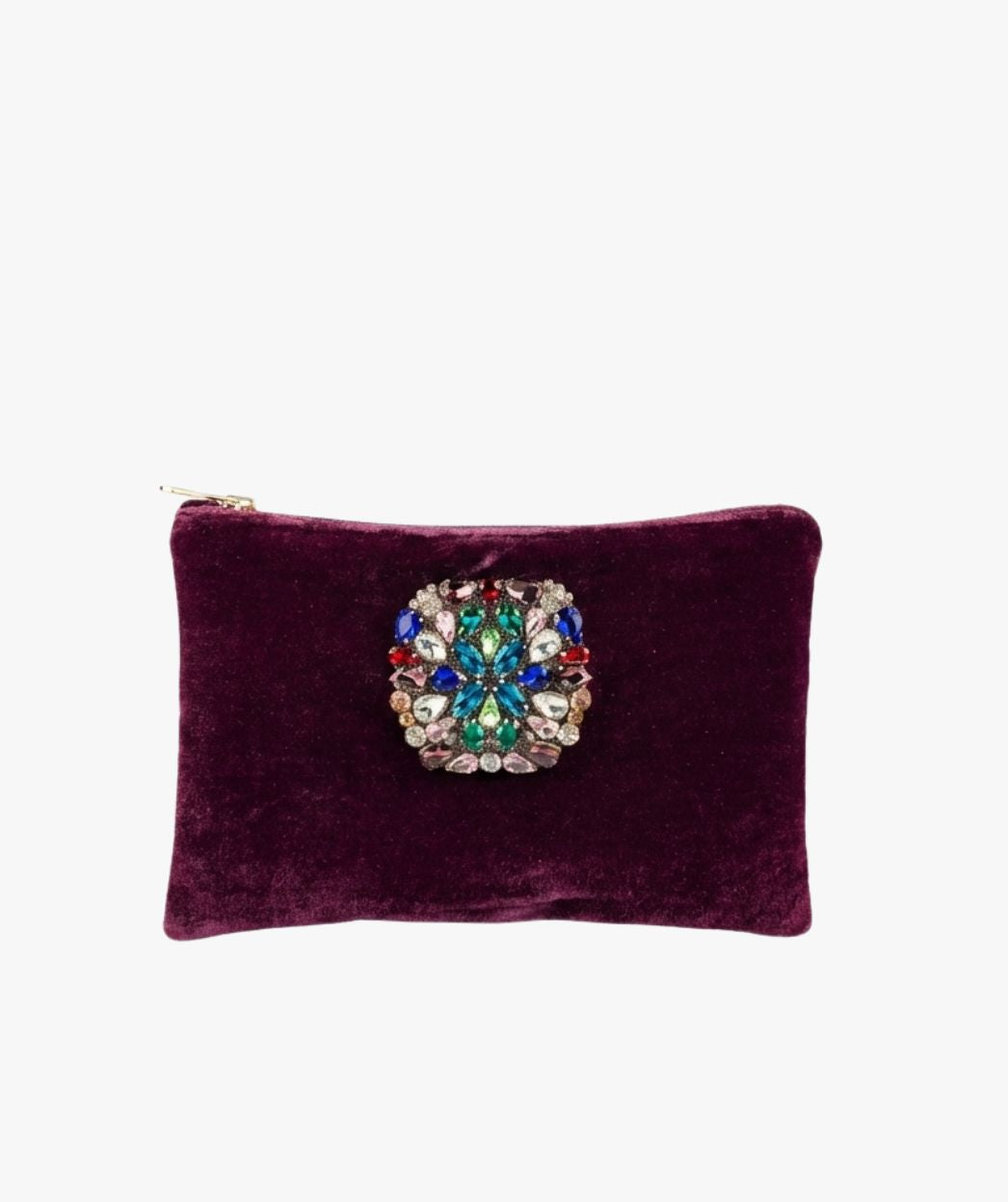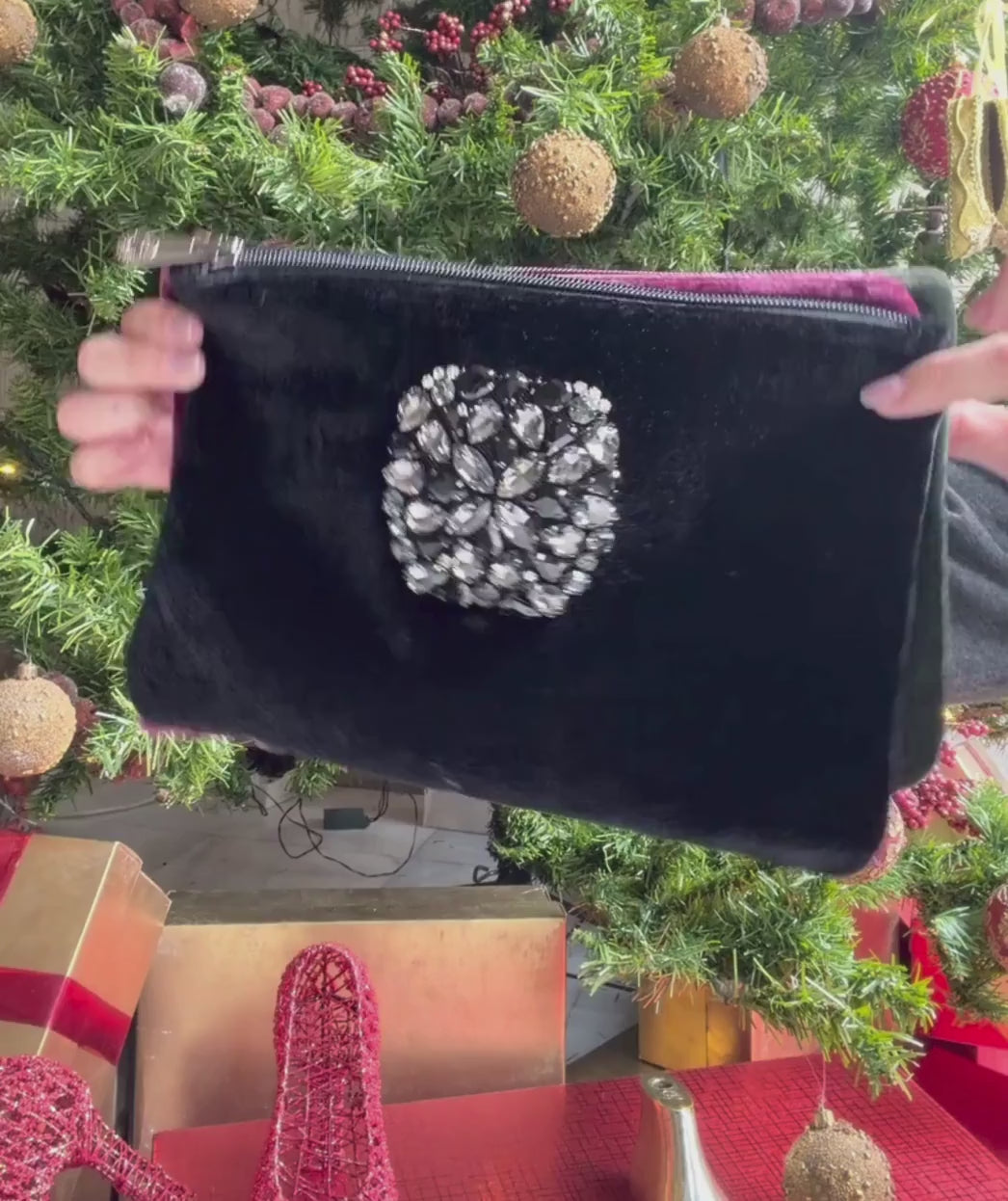Bolsa de veludo bordô. Uma versão festiva cheia de brilho para completar seus looks para eventos. Nossa bolsa COVADONGA se tornará seu melhor acessório nesta temporada. Seu design compacto e prático faz dela uma peça especial com a qual você vai querer combinar todos os seus looks. Fechamento do zíper. Não tem alça.